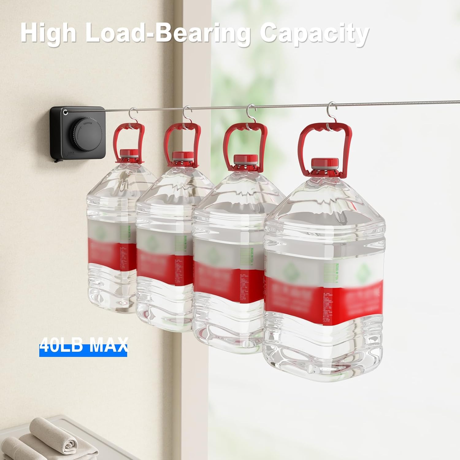 • 【Non-Sagging Design】The Retractable Clothesline is a non-sagging design, there is a locking device and a rotating tightenable device, when you hang a lot of clothes resulting in sagging, keep the locked state and then rotate to tighten the line can solve the problem of sagging. Such a very careful design is not available in others' clotheslines.