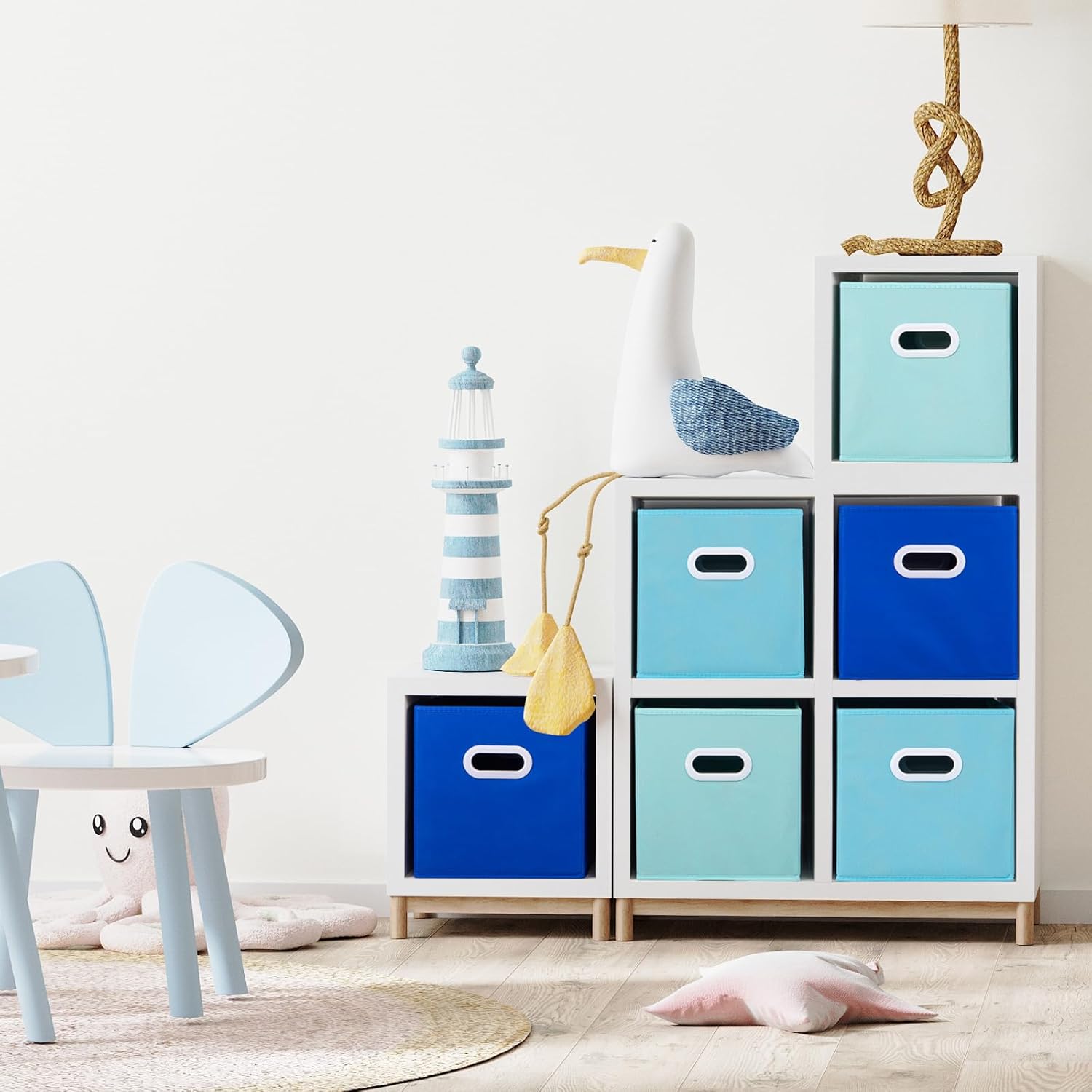 Stero Fabric Storage Cubes Bins, 11 inch Fun Colored Foldable Storage Baskets with Dual Plastic Handle for Home, Kids Room, Closet and Toys Organization, Multi Colored, Set of 6