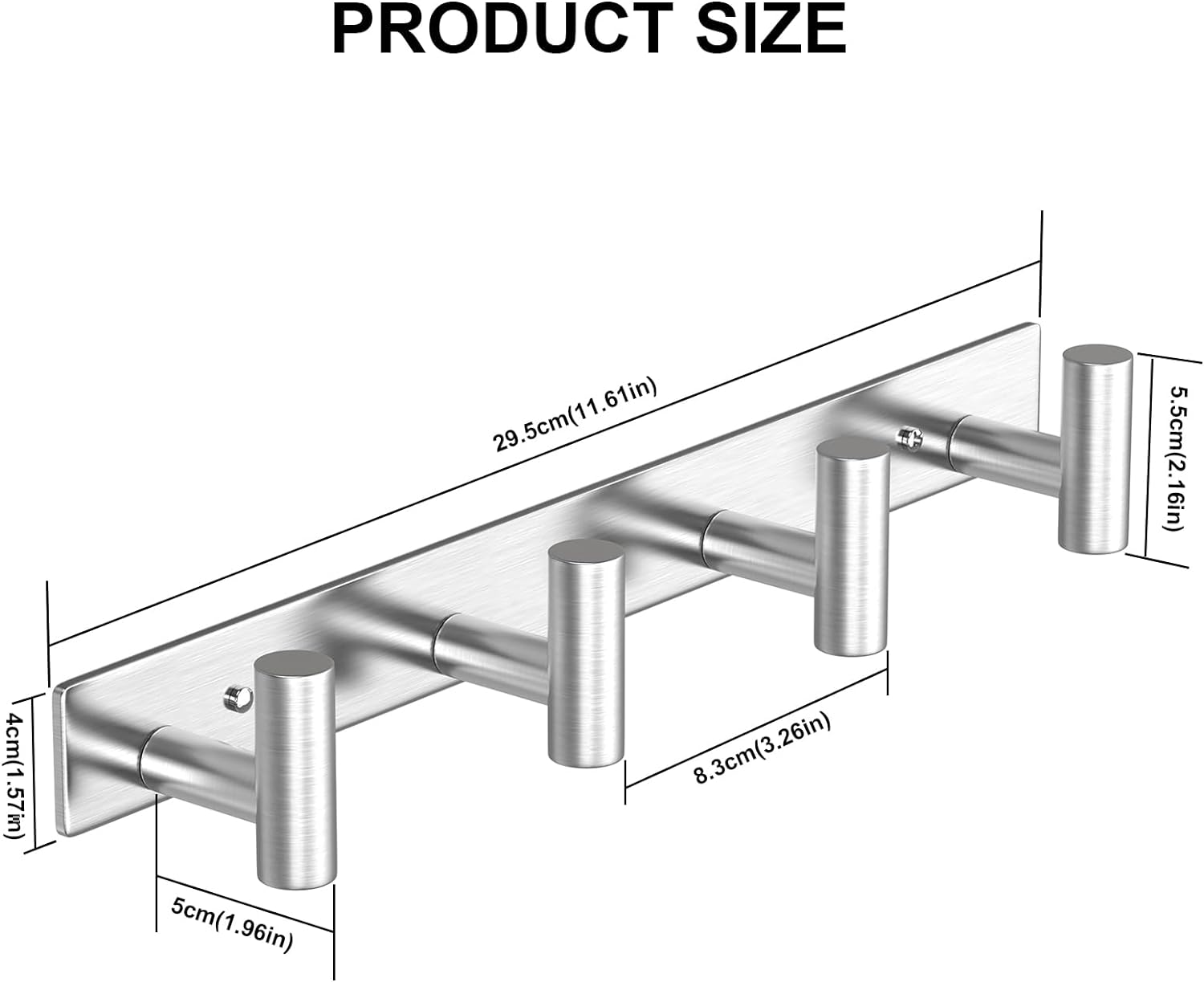 • VERSATILE USE:This Silver Row Hook Coat Rack with 4 Hooks is good for various locations, including bathrooms, kitchens, living rooms, entrances, and offices. Use it to hang towels, kitchenware, coats, hats, jackets, wallets, keys, and more, adding functionality and organization to your space