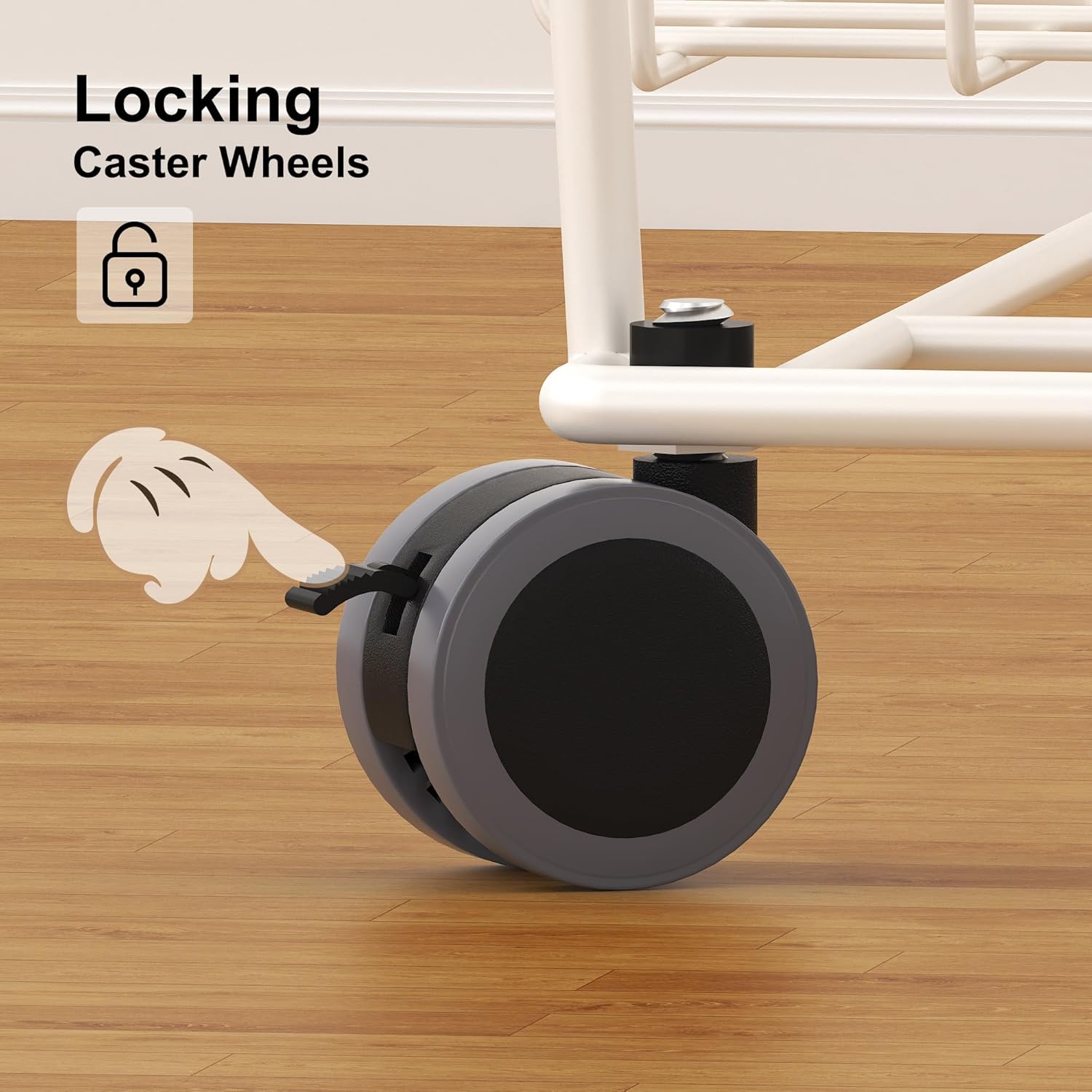 • 【Easy to Assemble】The previous wheel defect problem has been solved! No hassle setup. Simply slide each Storage Basket bottom into the top of another, you could set the rack very well, apply the 4 upgraded wheels according to your needs. Two of the casters are lockable, to keep the storage organizer securely in place when needed. Picture instructions also included with product