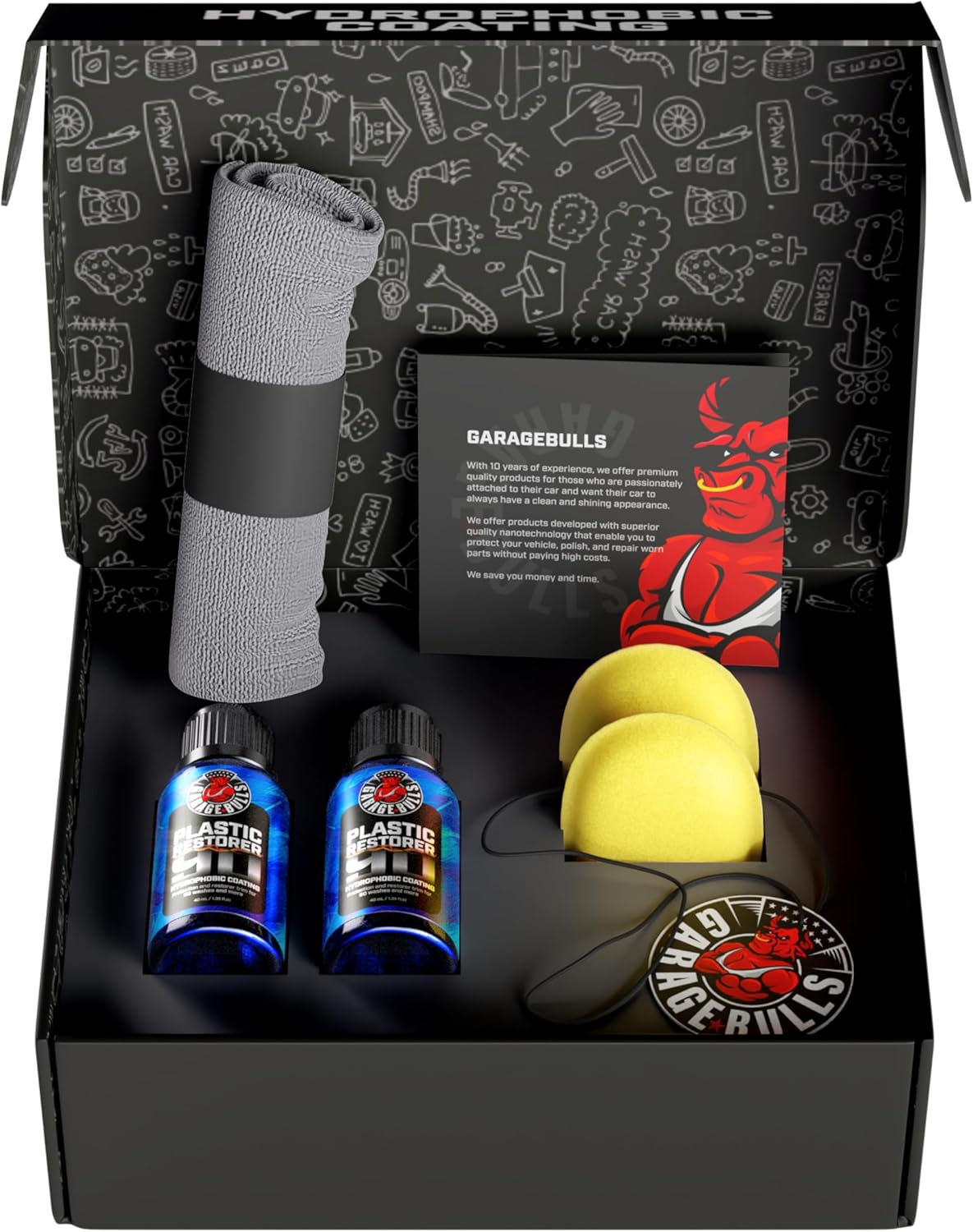 garage bulls Car Plastic Restorer & Hydrophobic Trim Ceramic Coating Kit Long Lasting Coating Car Accessories 30ml, 1fl oz (2 Pack)