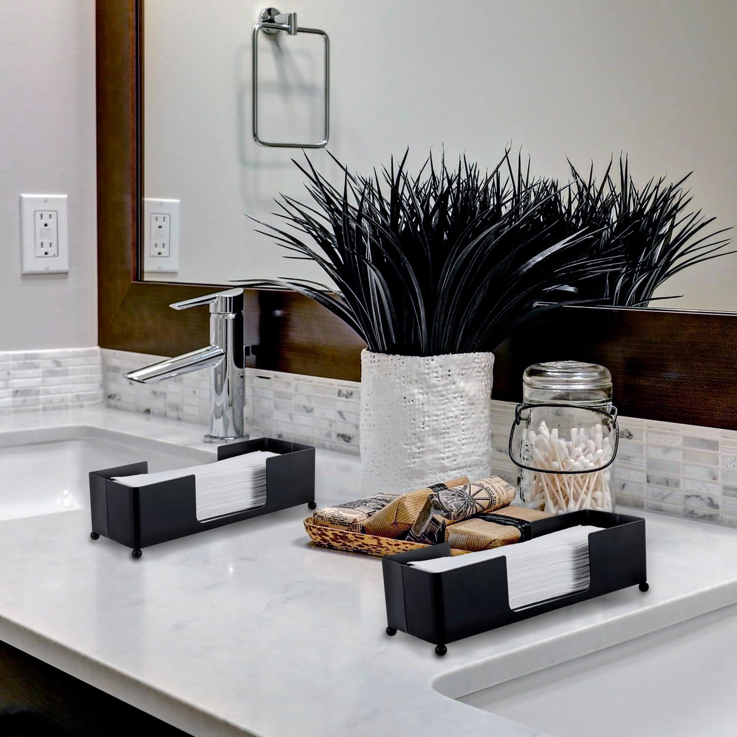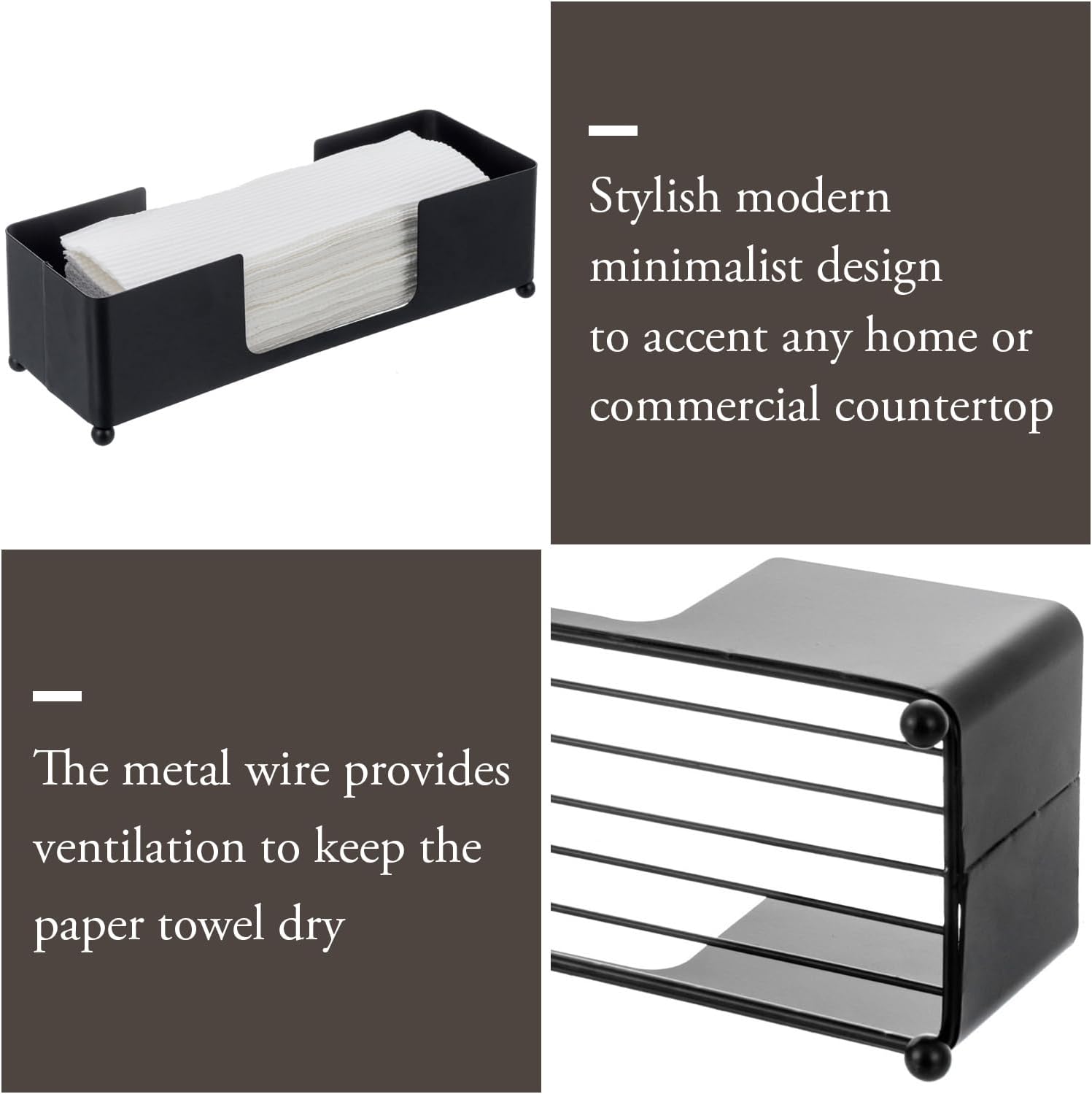 MyGift Modern Matte Black Metal Tabletop Paper Hand Towel Holder, Commercial Countertop Tissue Dispenser Tray