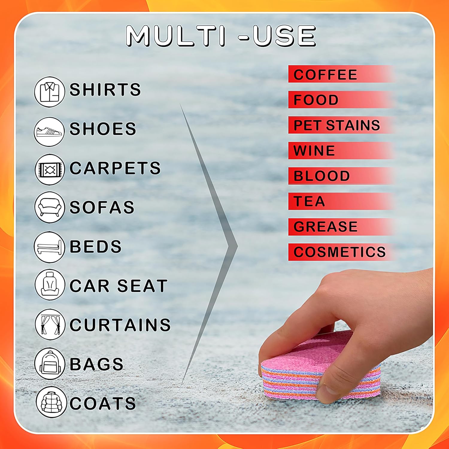 • Effective on All Types of Stains: Use this best grease remover for clothes, foam carpet cleaner, and upholstery stain remover for instant results. Whether as a furniture stain remover upholstery, couch cleaner, or furniture cleaner, it targets stubborn spots without soap, foam, or harsh chemicals