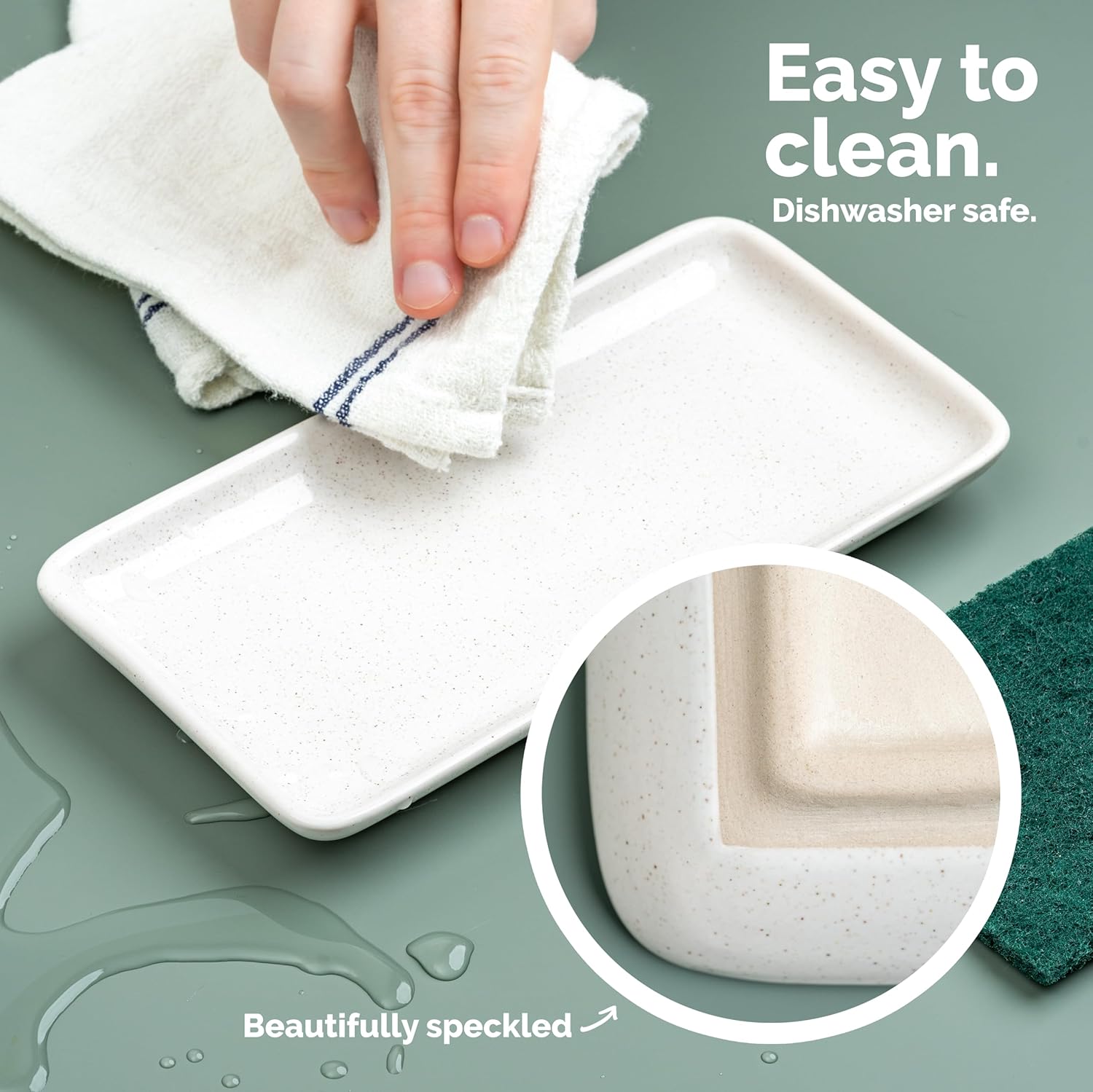 • CERAMIC TRAY: Elevate your kitchen decor with an elegant, white-speckled tray. This heavy, sturdy, and easy-to-clean tray is the perfect countertop accessory.