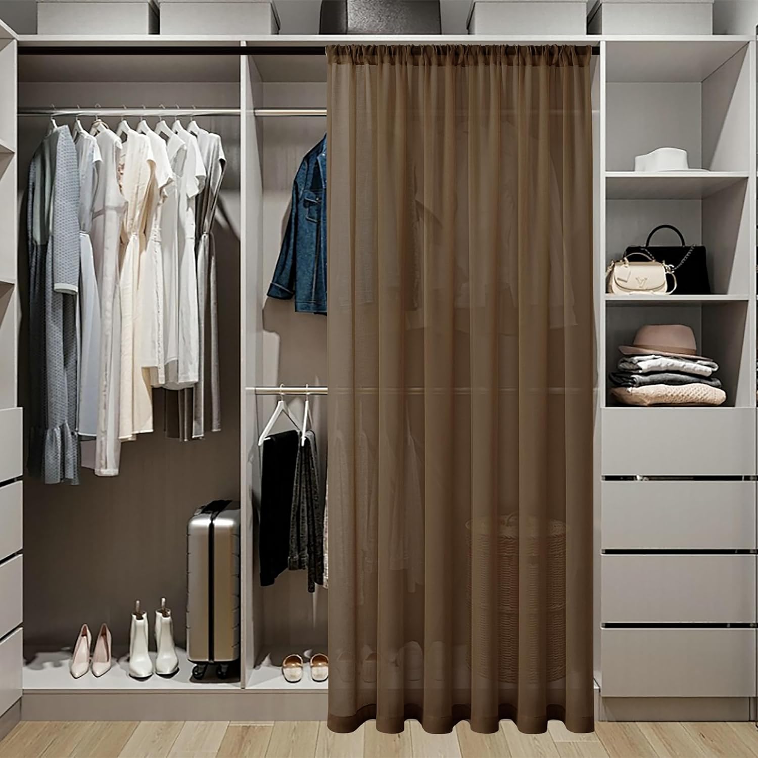 Tollpiz Sheer Curtains Closet Linen Textured Curtain Sheers Doorway Light Filtering Voile French Door Rod Pocket Curtains Patio Glass Door, 54 x 63 inches Long, Brown, Set of 1 Panel