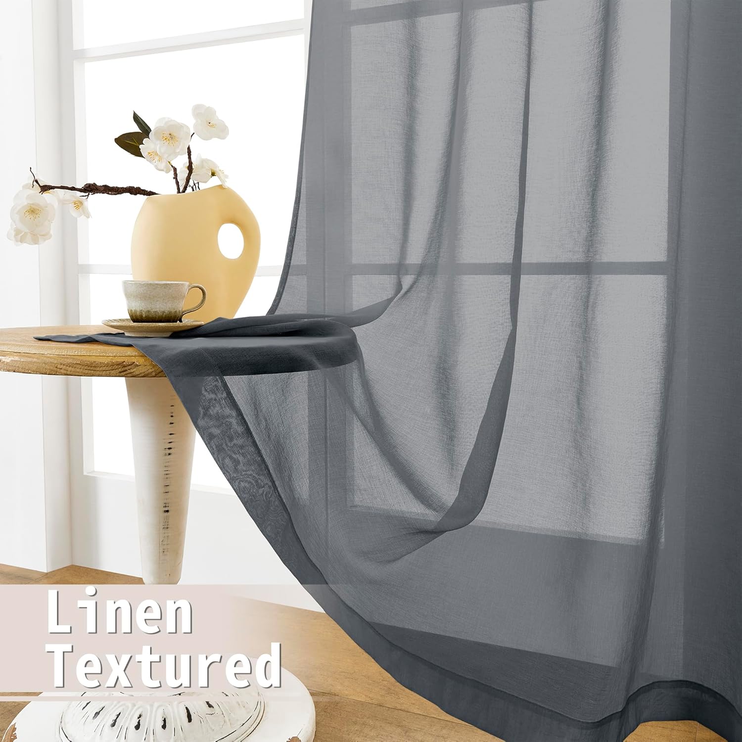 • Light Filtering: The linen look dark grey door sheer curtain can allow the right amount of natural light through to bring your room a hazy and softer vision, keep you away from someone’s glance from outside and provide you some privacy.