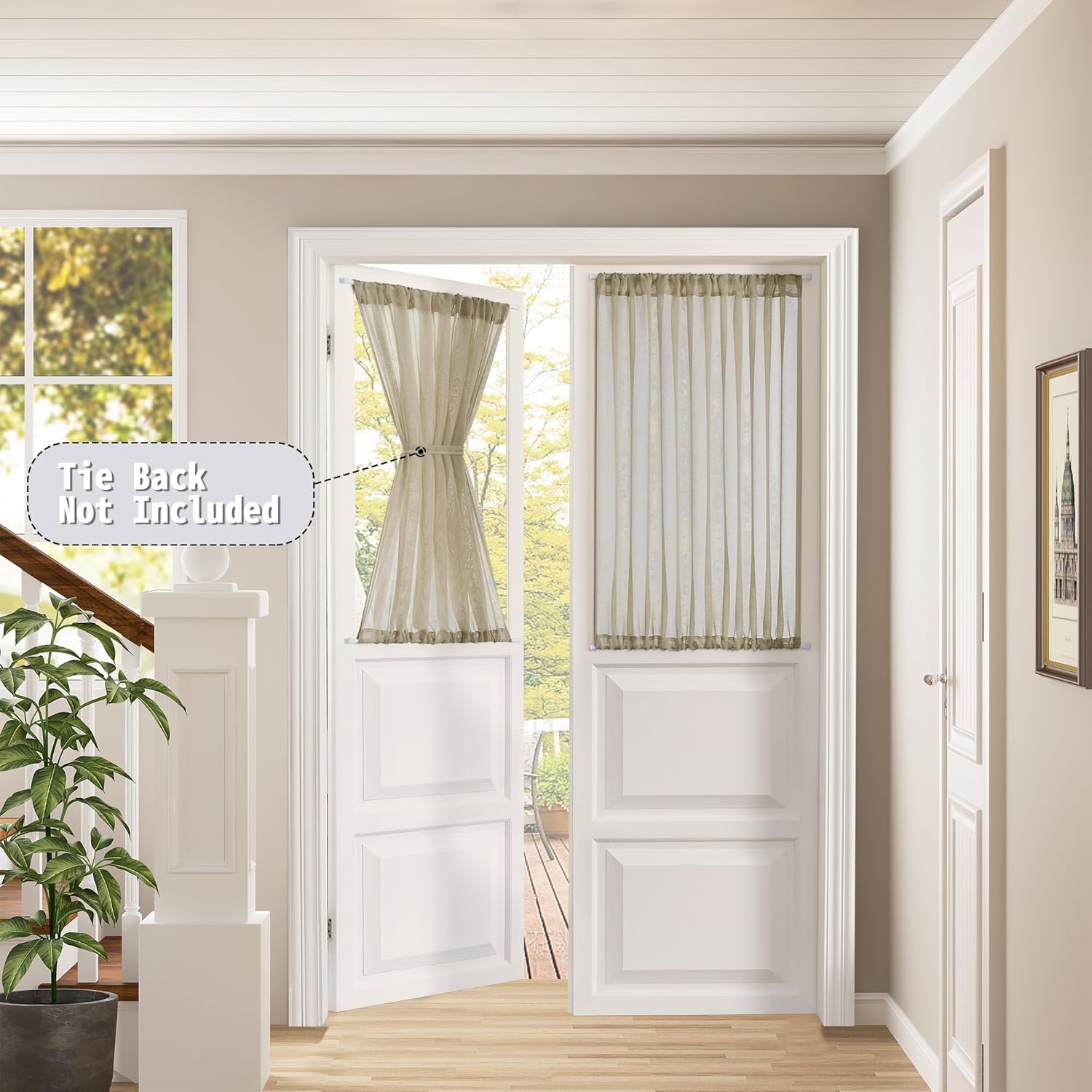 Tollpiz Sheer Door Curtains Closet Linen Textured Curtain Sheers Doorway Light Filtering Voile French Door Rod Pocket Curtains Patio Glass Door, 54 x 63 inches Long, Taos Taupe, Set of 1 Panel