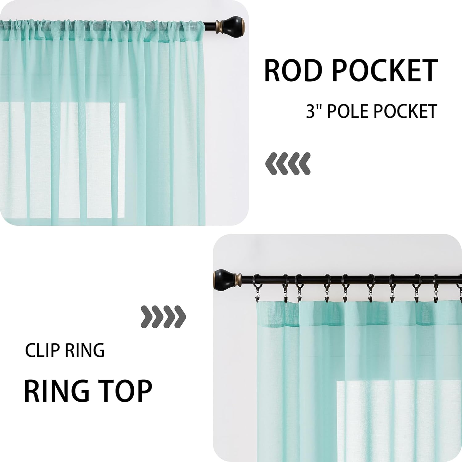 Tollpiz Sheer Curtains Closet Linen Textured Curtain Sheers Doorway Light Filtering Voile Patio Glass Door Rod Pocket Curtains French Door, 54 x 80 inches Long, Crystal Blue, Set of 1 Panel