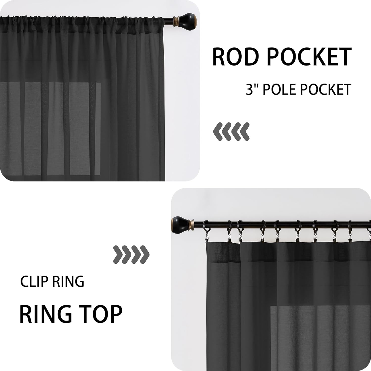 • Package Included: Sold as 1 sheer curtain panel. Each unfolded panel measures 54” width by 63” length. With 3" pole pocket are our curtains suitable for the most of curtain rod also easy to slide, and 2” bottom hem makes each panel drape well.