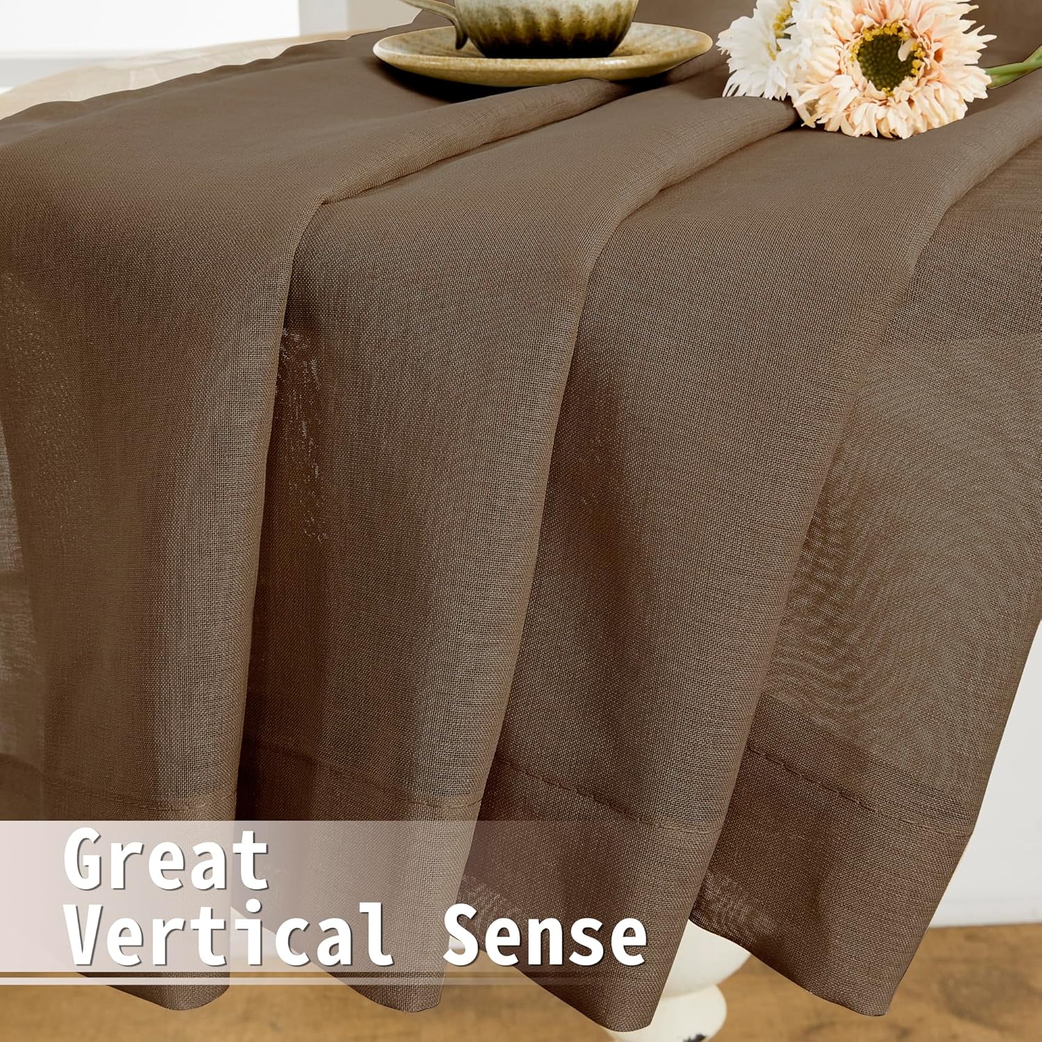 • Light Filtering: The linen look brown door sheer curtain can allow the right amount of natural light through to bring your room a hazy and softer vision, keep you away from someone’s glance from outside and provide you some privacy.