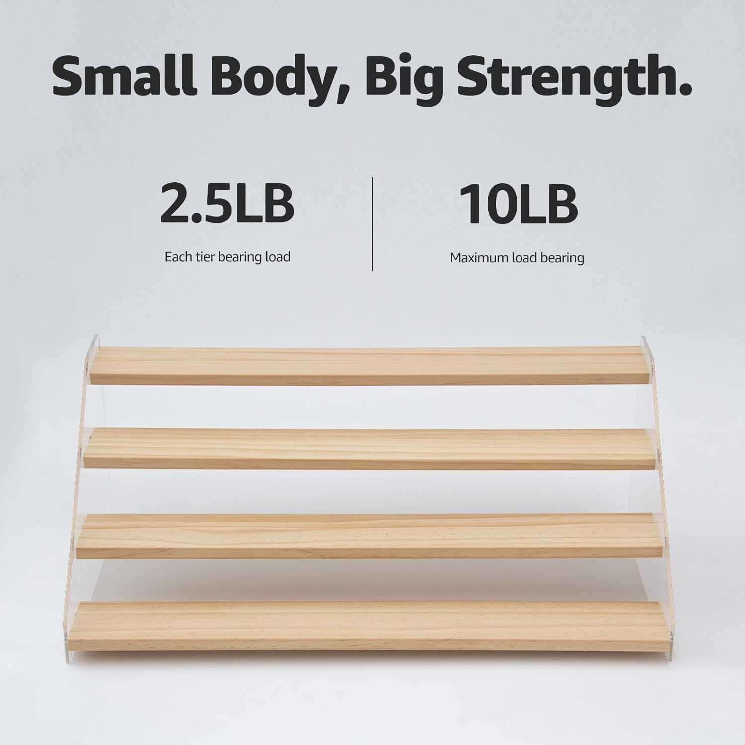 • Elegant & Sturdy: Risers display stands constructed from high-quality pine wood and corrugated acrylic, making it both aesthetically pleasing and fashionable, as well as durable and resistant to deformation, the spice shelf is a beautiful and robust addition to any space