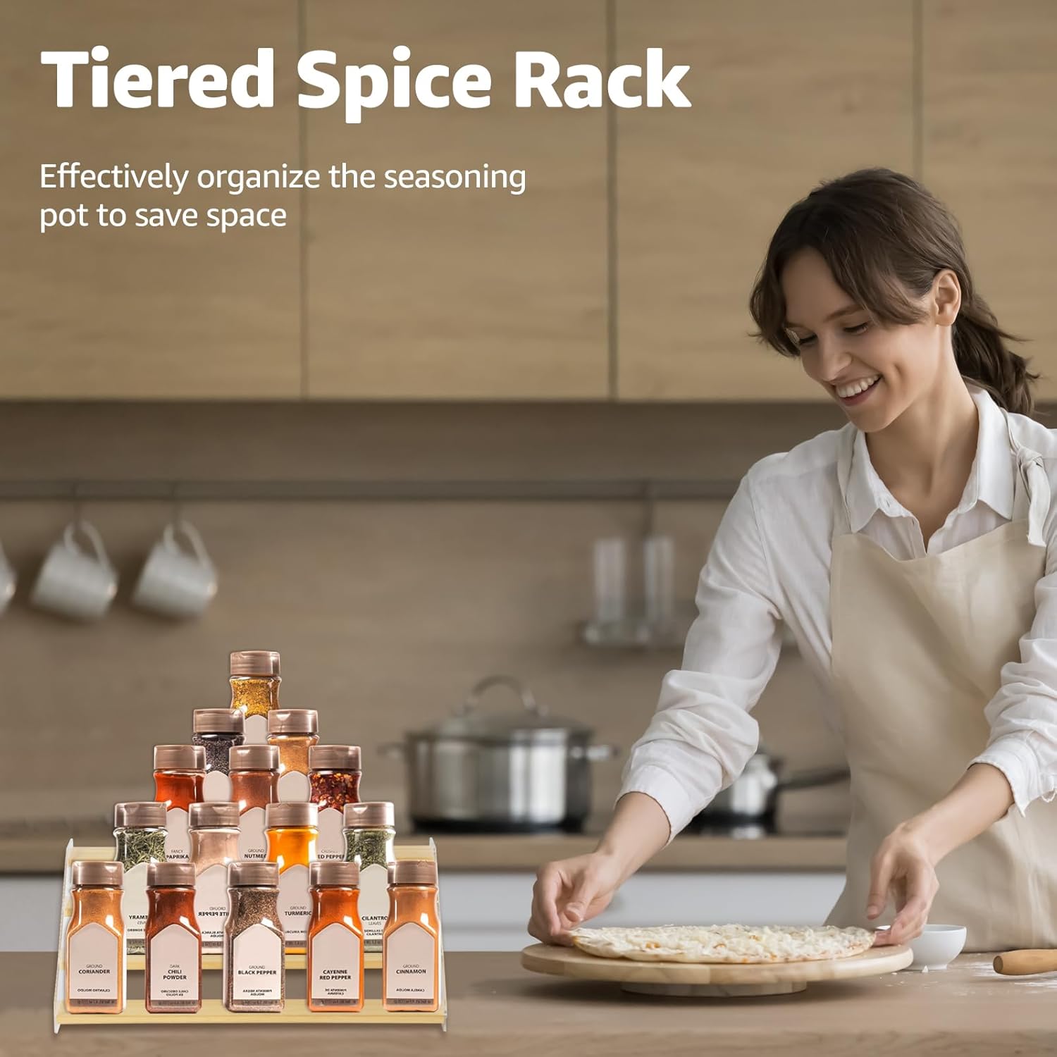 nianfeng Tiered Spice Rack, 4-Tier Spice Pantry Kitchen Cabinet Organizer, 16-Inch, Natural Wood Acrylic Stair Riser Stand, Countertop Seasoning Shelf
