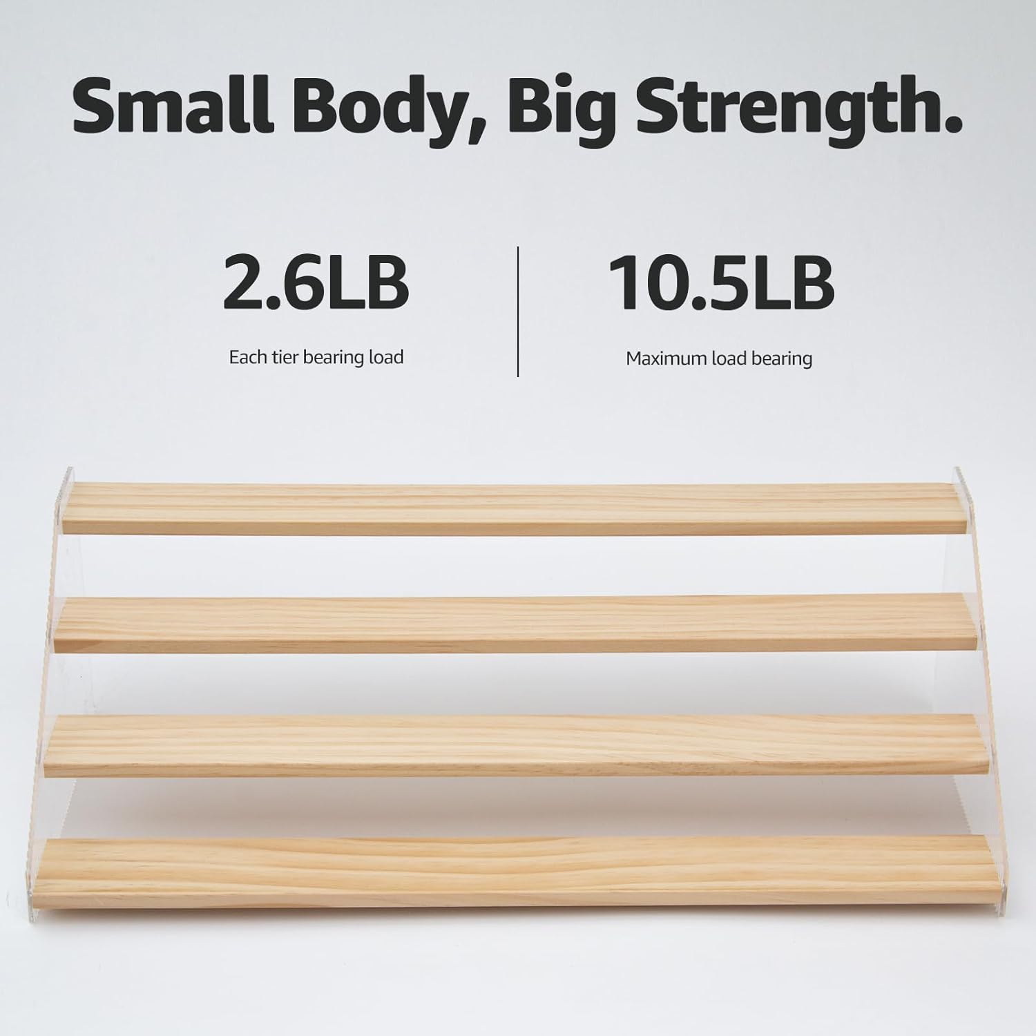 • Elegant & Sturdy: Risers display stands constructed from high-quality pine wood and corrugated acrylic, making it both aesthetically pleasing and fashionable, as well as durable and resistant to deformation, the spice shelf is a beautiful and robust addition to any space