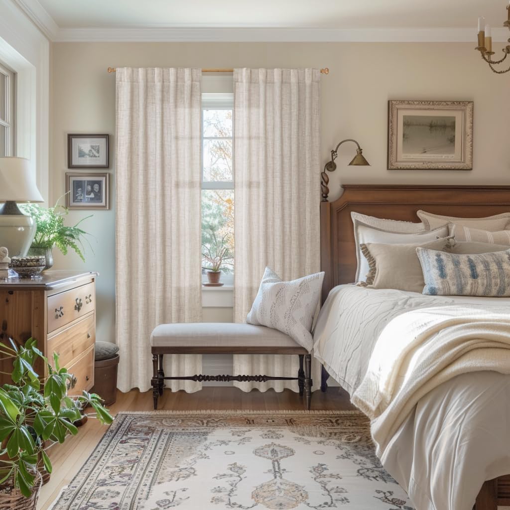 • Linen Blend: Our faux linen curtains are made from linen blend fabric with a premium soft touch, excellent drape and wrinkle-free. Natural and rustic look that adds warmth and texture to any room, suitable for the living room, bedroom, farmhouse, dining room, office and any style space.