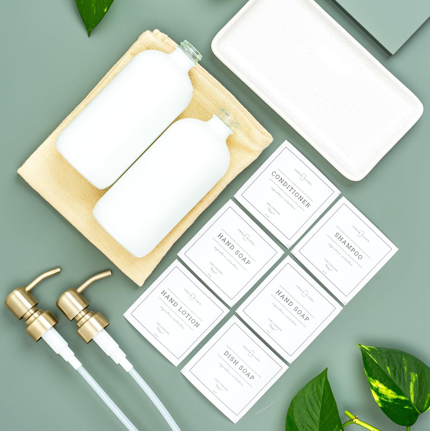 • PREMIUM WATERPROOF LABELS - Six high-end labels, featuring two for hand soap, alongside dish soap, shampoo, conditioner, and hand lotion. Crafted for daily use, these premium 3" x 3" labels add a touch of elegance.