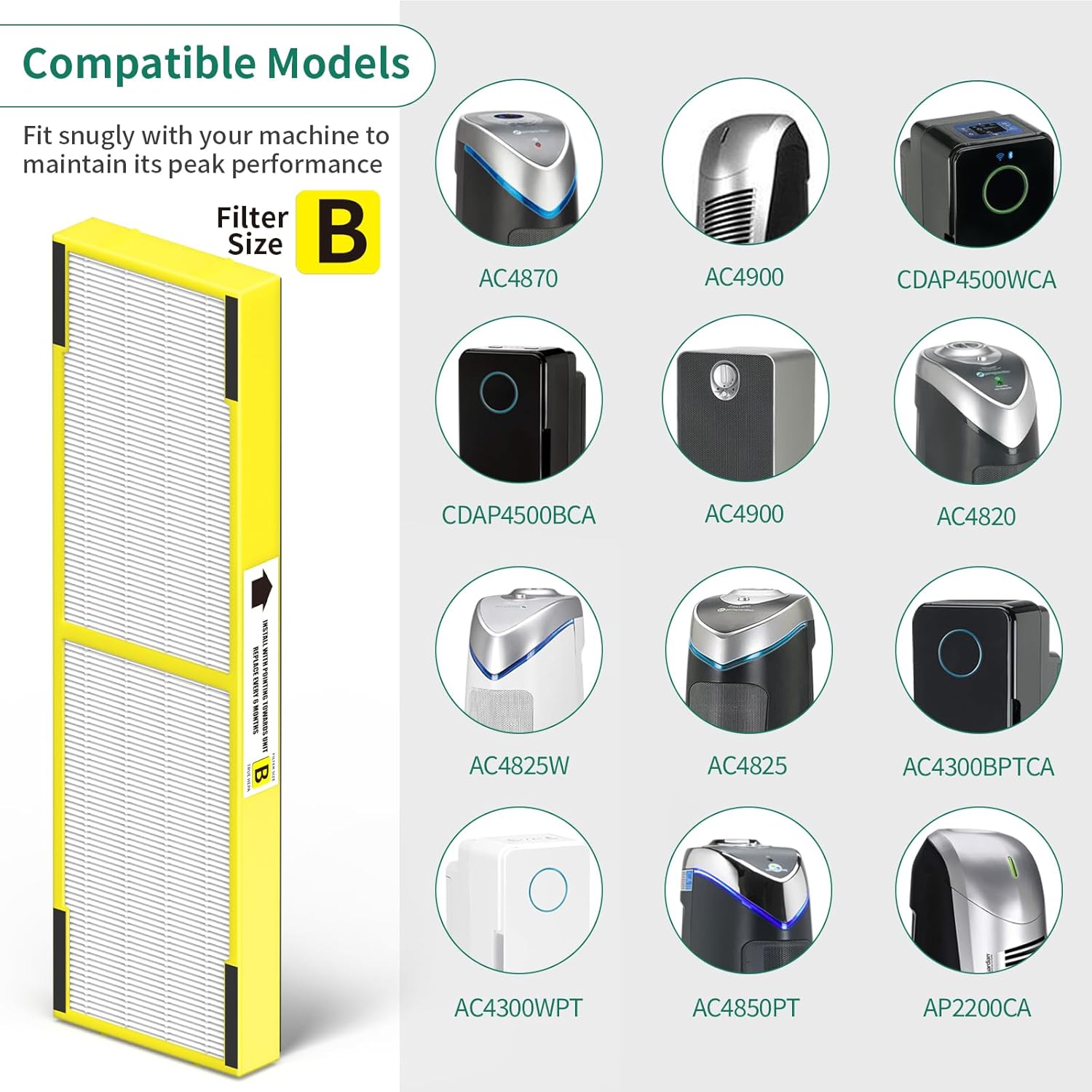 4 Packs Plastic Frame FLT4825 Replacement Filters B Compatible with AC4825 AC4825W AC4300 AC4800 AC4900 AC4850 Air Cleaner Purifier, 4 H13 True HEPA Filters and 8 Activated Carbon Pre-Filters