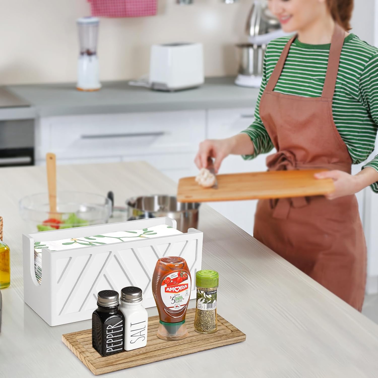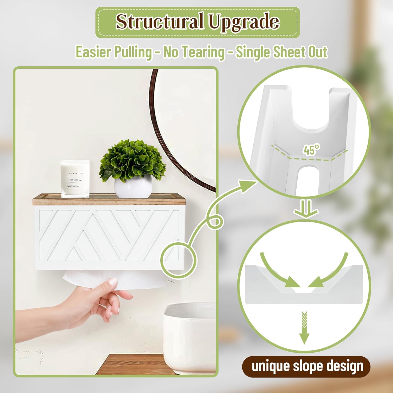 • 【Practical Paper Towel Holder for Farmhouse Decor】Our bathroom napkin dispenser is practical and beautiful. With wide and smooth opening bottom, our wall mount paper towel holder helps you easily access to the towel paper you need. In addition, the brown lid, exquisite carving, and white appearance of the bathroom paper towel holder adds a rustic home decor to the room.Whether on display on your countertop, or hang on your home wall, the bathroom paper towel holder is an eye-catching focus