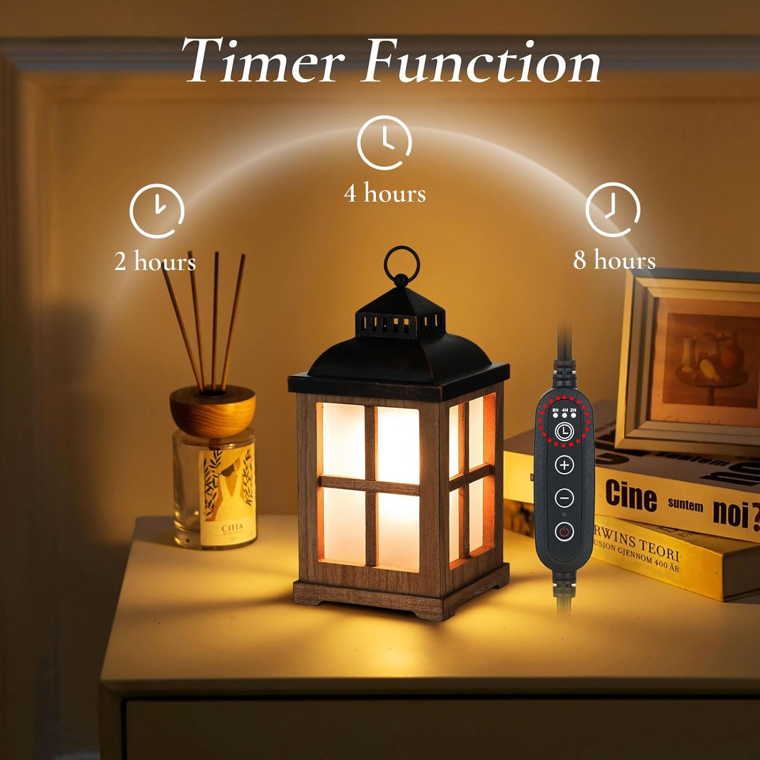 • 【2-IN-1 Lantern Wax Warmer】A classic lantern made from wood, glass panels, a brown metal lid & melt tray. This lantern acts as more than just home decor, it's an electric cute scented wax burner. Simple and sturdy, it brings a farmhouse touch to your home decor.