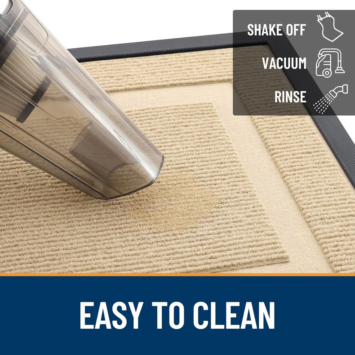 • [EASY TO CLEAN] The OLANLY front door mat is designed for quick and effective cleaning using a vacuum or traditional broom cleaning methods. Additionally, tapping and shaking the back of the doormat helps remove residual debris. For a deeper clean, rinse it with a garden hose and hang the mat in a ventilated place or dry it in a dryer. This versatile cleaning method ensures that your doormat stays clean and tidy, ready to welcome guests.