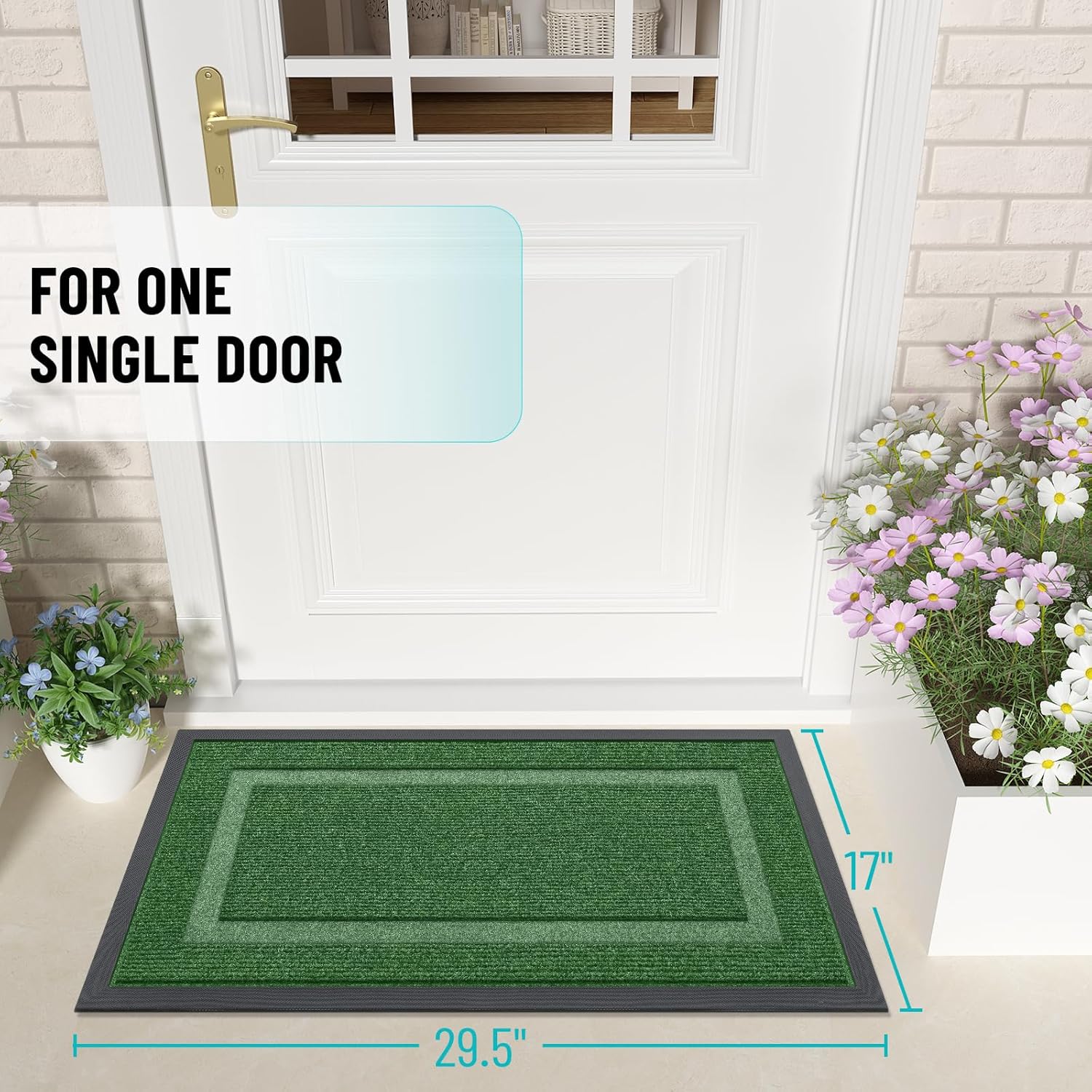 OLANLY Front Door Mat Indoor Outdoor Entrance, Waterproof All-Season, All-Weather Doormat, Sturdy Natural Rubber, Fade Resistant, Low Profile, Easy Clean Patio Porch Entryway Mat, 29.5x17, Green