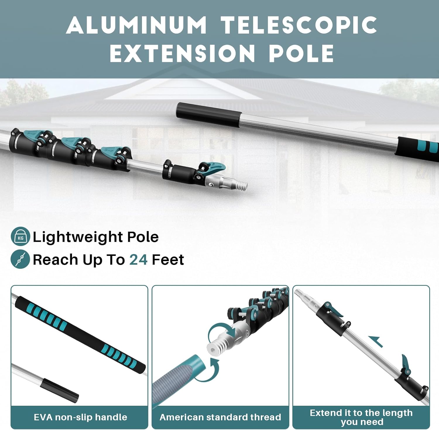 • Extendable Feather Duster: Our Extendable Duster, adjustable from 6FT to 24FT, remains a cornerstone of our kit. It efficiently removes dust from high ceilings, bookshelves, and more, ensuring every nook and cranny is cleaned to perfection.