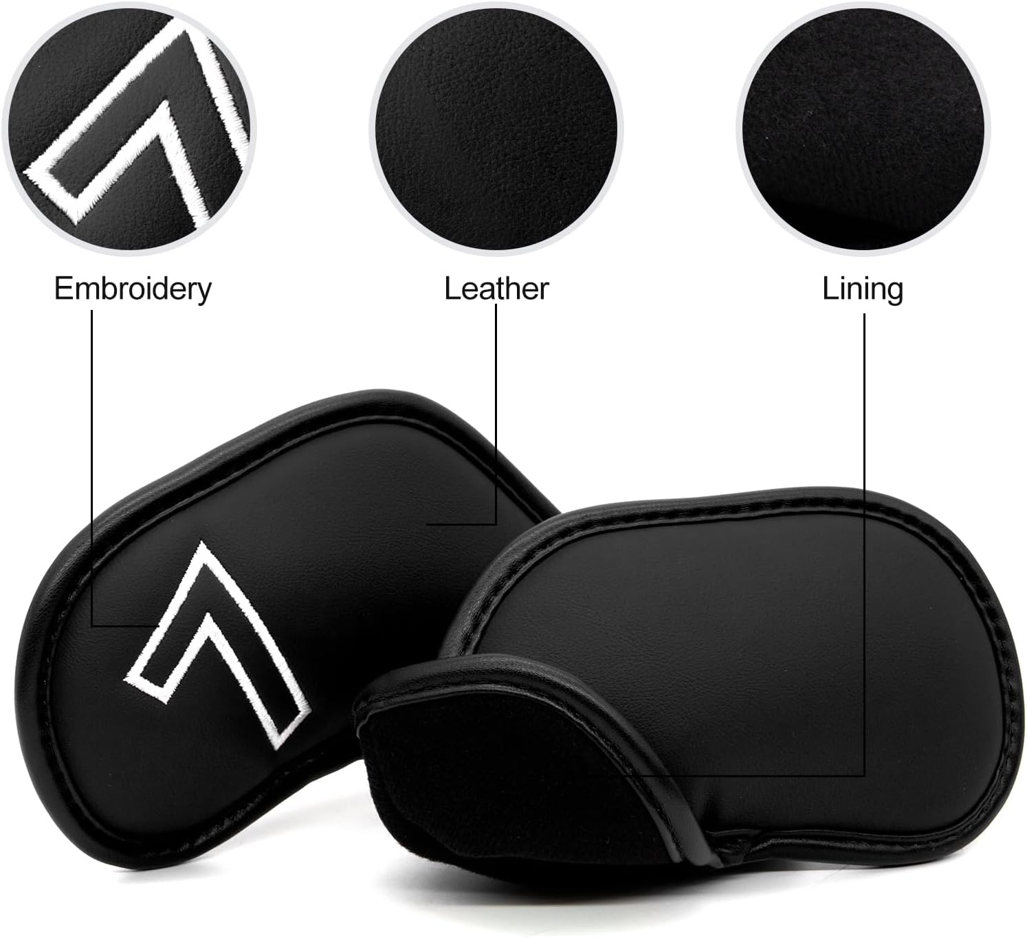 • ☑【High Quality Synthetic Leather】:The golf iron head cover is made of extra thick 3 layers of material to provide strong protection for your iron golf clubs. From the outside to the inside are synthetic leather, sponge middle layer, and inner liner. The Monterra Golf Iron Head Cover provides the best way to protect your valuable golf club head.