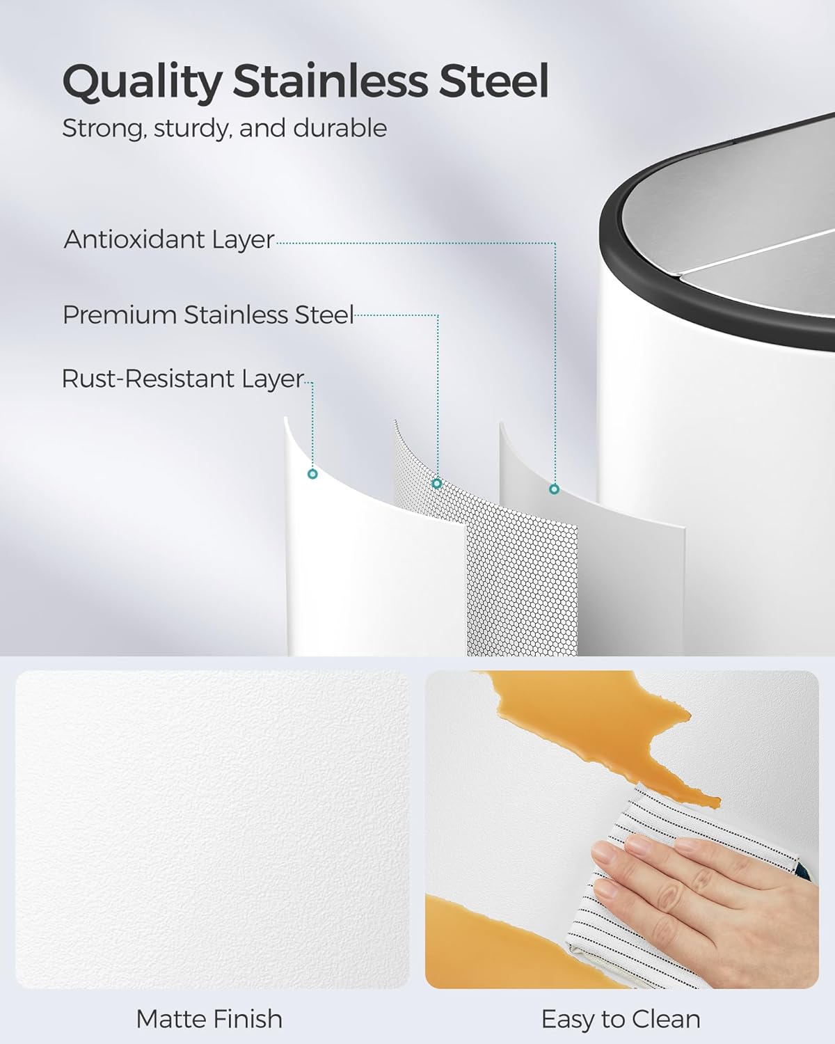 • [Soft Close] This garbage can promote a peaceful kitchen environment with its stainless steel lid that closes silently, eliminating any loud noises or bangs