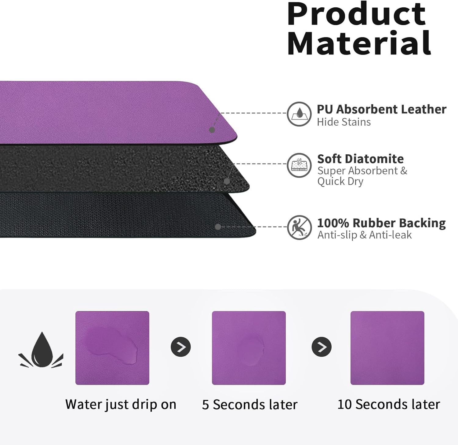 Dish Drying Mat for Kitchen Counter, Heat Resistant Drainer Mats with Non-slip Rubber Backed, Hide Stain Kitchen Super Absorbent Draining Mat, Easy to Clean Dish Rack Pad, Purple 16"x18"