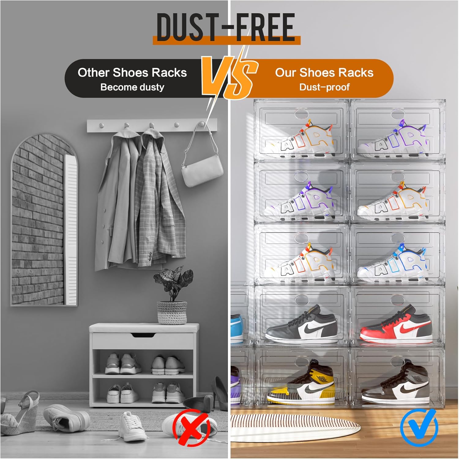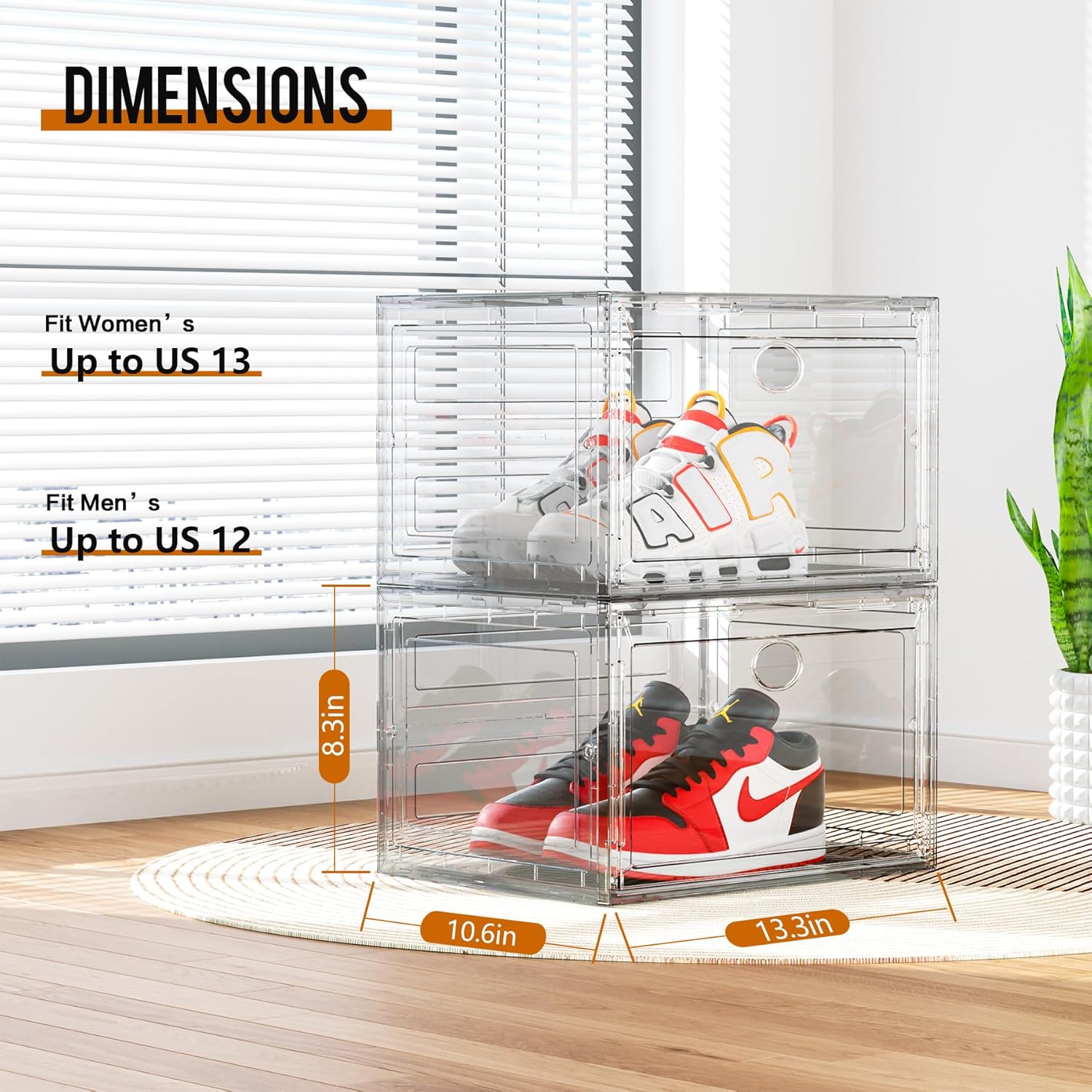 KEFA XL Shoe Storage Box Organizer, 6 Pack Shoe Boxes Clear Plastic Stackable, Sneaker Display Case Container Fit for US 13 (Side 6 PACK CLEAR)