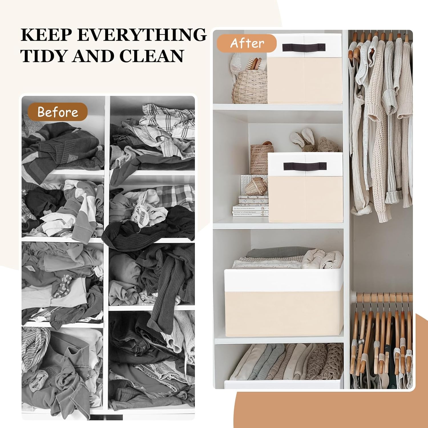 • 【MULTI-PURPOSE】 Our 6 pcs closet storage bins are home essentials to save storage space and keep everything organized. Large enough baskets for organizing clothes, kid’s toys, nursery room items, extra linens, laundry, towels, sheets, pantry and more.