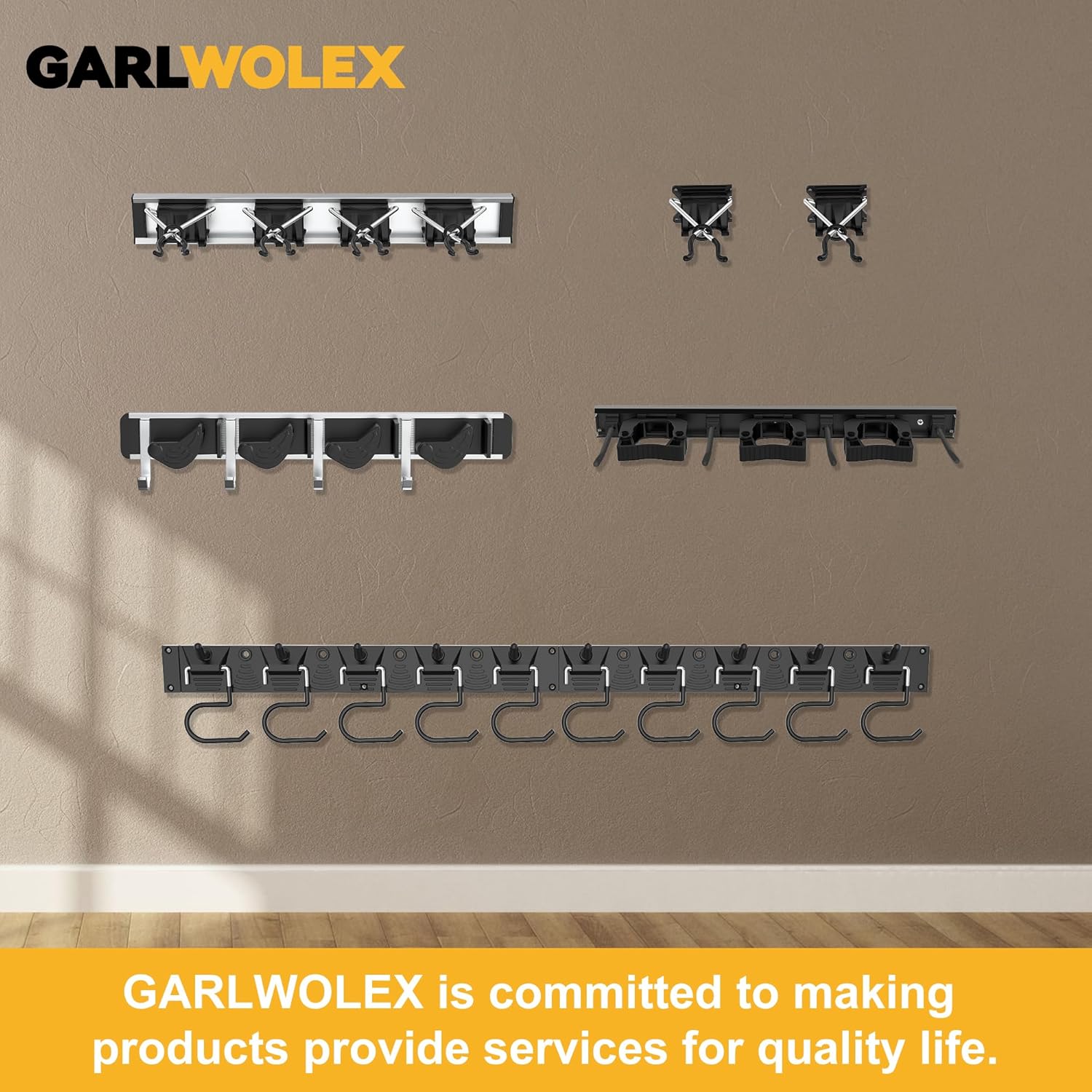 • Secure, No-Slip Design: Equipped with 4 spring-loaded slots with rubber grips, this holder ensures that tools are securely locked in place. The 4 hooks can support a total weight of up to 40 pounds, making it ideal for everything from brooms and mops to gardening and hardware tools.