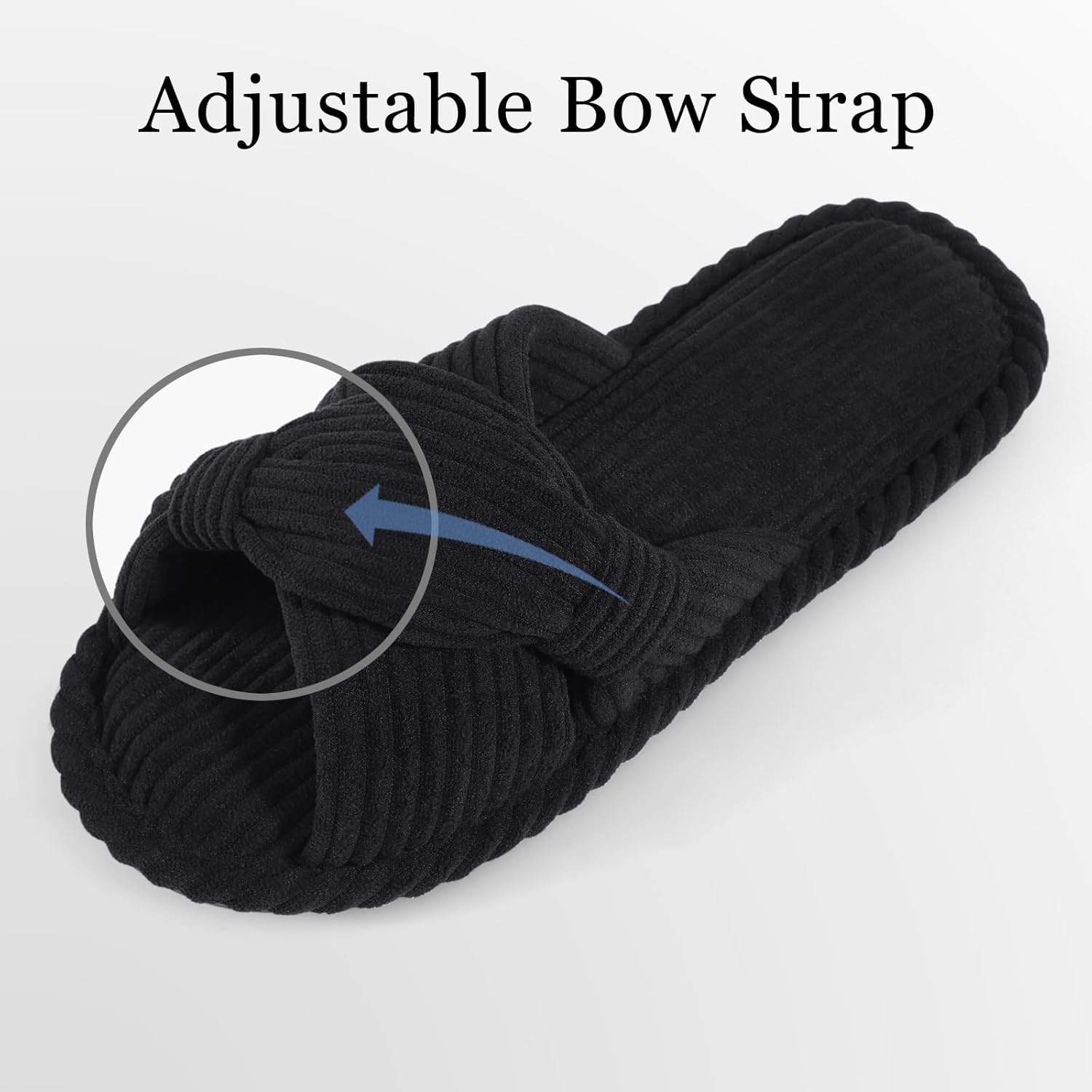 • Breathable Bow Slippers: Crafted from luxurious corduroy fabric, our stylish cross-band slippers are cute and functional, they are tied in in a unique and classic bow design, elegantly wrap around your feet while ensuring optimal ventilation to prevent sweating.