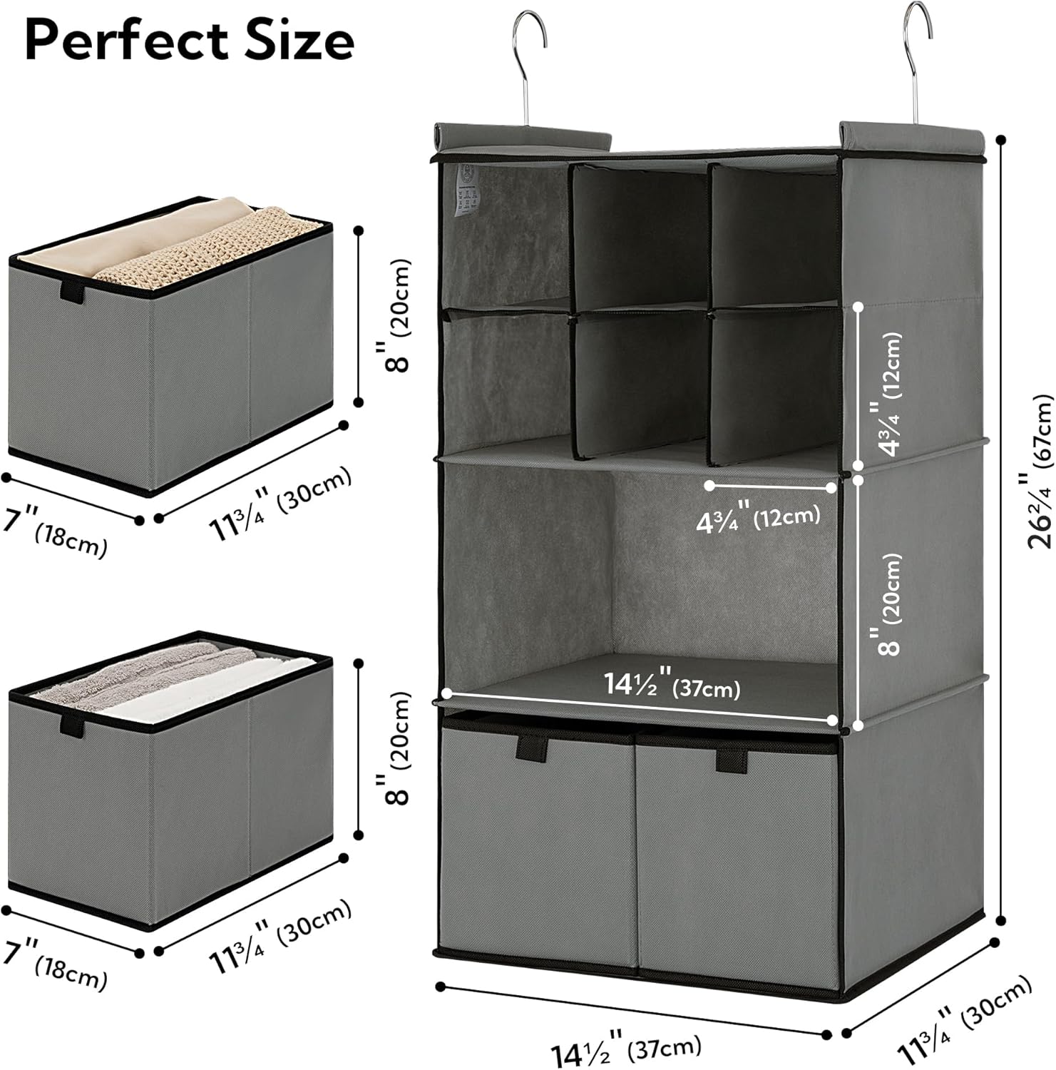 • 2 Removable Drawers: Measures 14½"L x 11¾"W x 26½"H. The open design of hanging closet shelves comes with 2 removable drawer dividers that slide out for easy access when needed, not only dust-proofing but also providing optimal space for storing socks, underwear, and other private items.