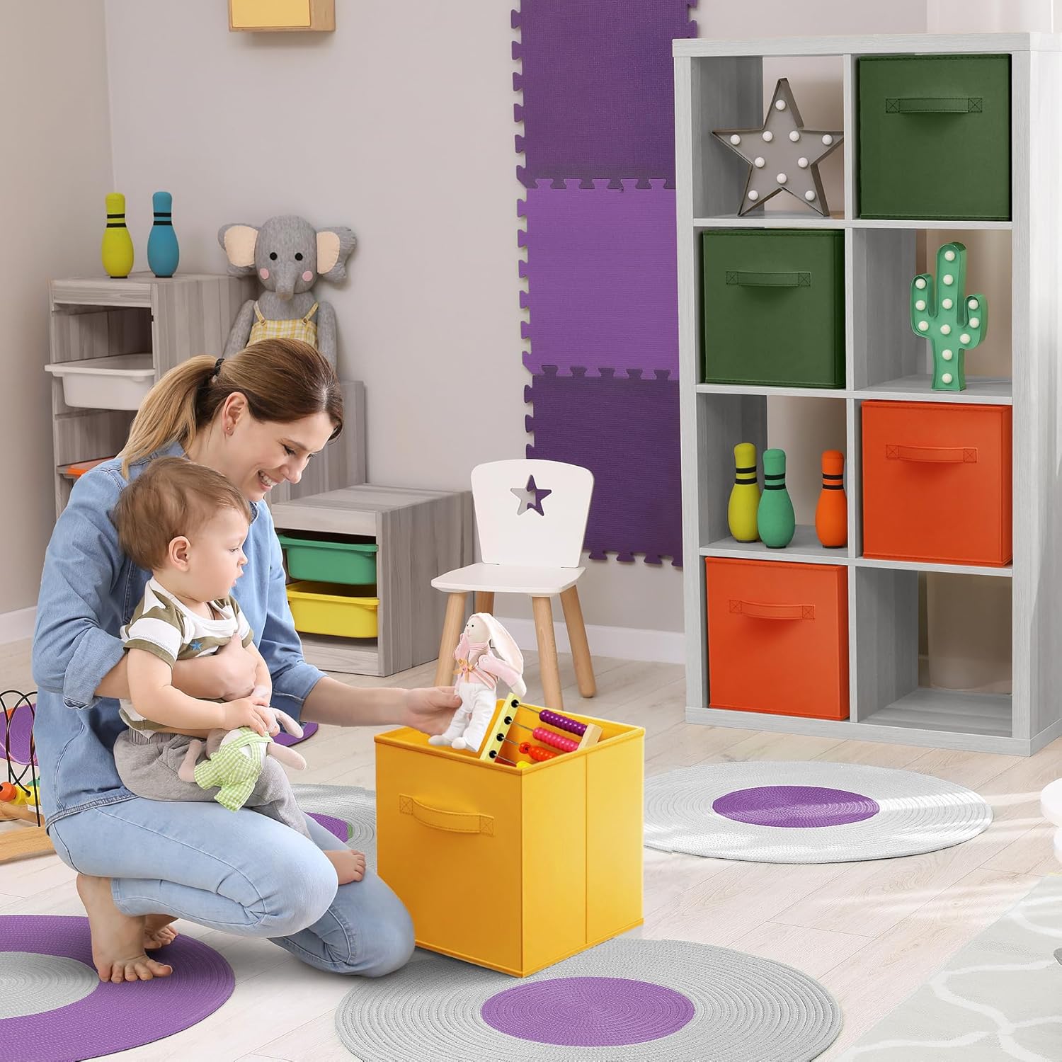 • Cubby Storage Bins Versatile Use: Use the Sorbus cube storage bins in the kid's room, toy storage, family room, laundry area, closet, storage room, etc - Sit Cube Organizer Bins on the floor, in the closet, bookcase, desk, shelving area, and cubbies