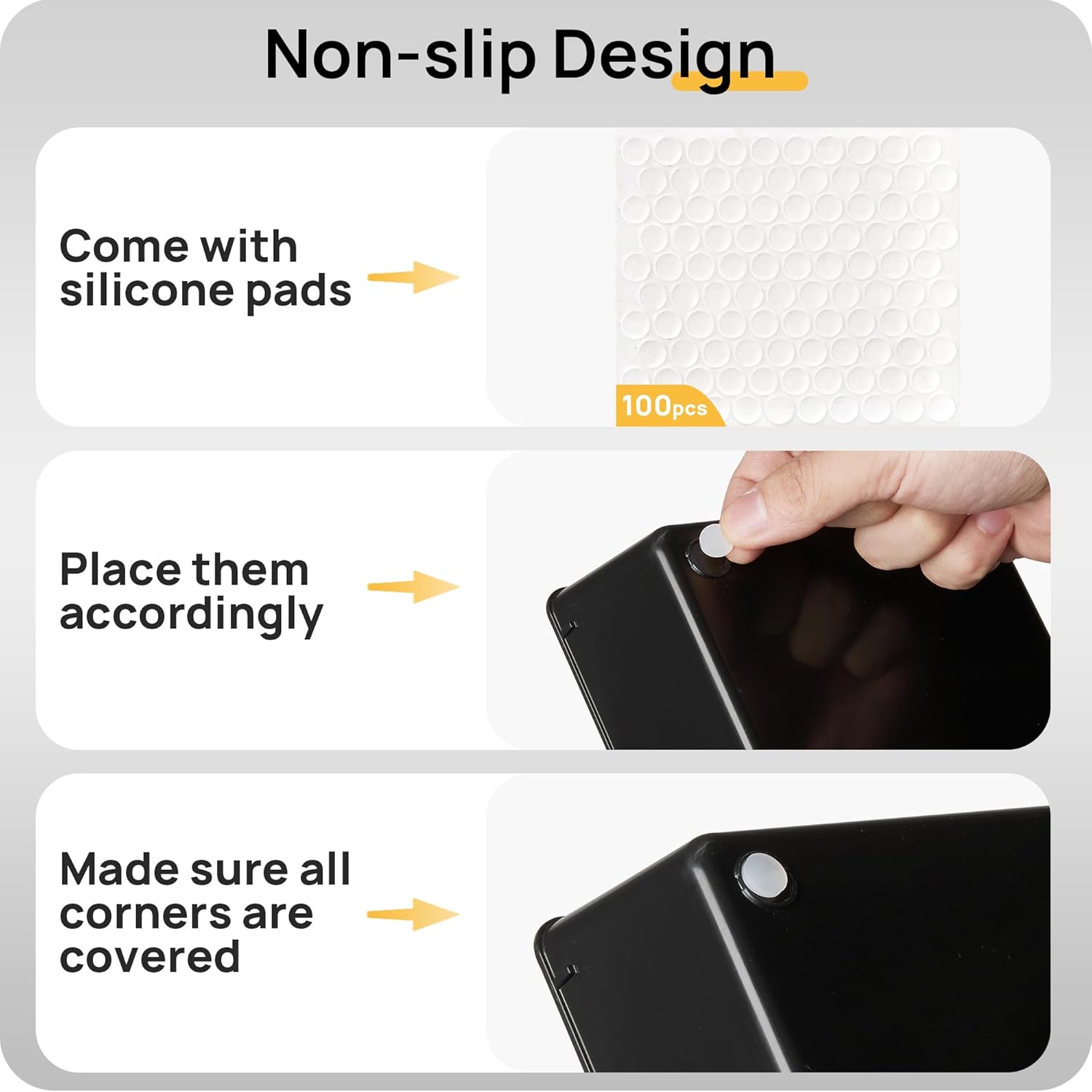 • 【Non-Slip and Durable】Extra 200pcs silicone pads are included, just stick them on the bottom of the plastic trays for non-slip. Made of durable and clear plastic, so you can see what’s in it without digging around or making a mess, help you get a neat lifestyle.