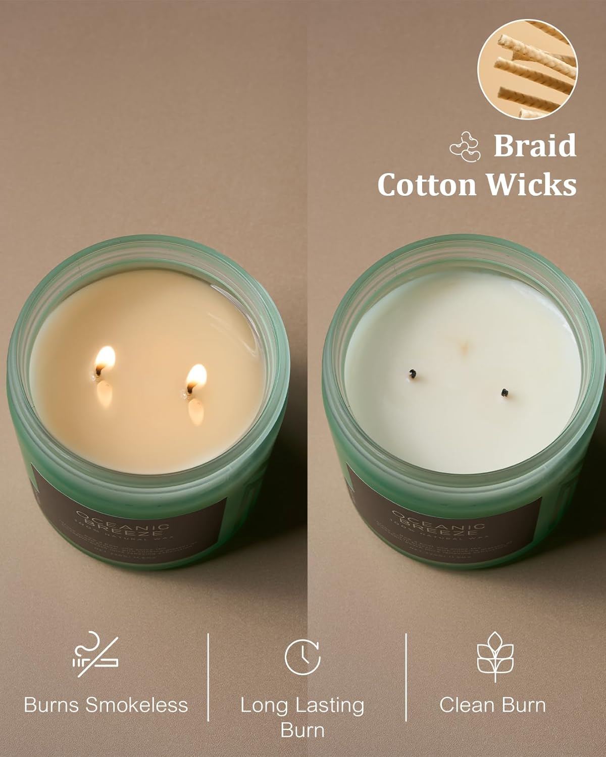 • 🌳 Clean Consistent & Even Burn - Using 2 American made lead-free cotton wicks for a even burn result. They're cotton flat braid wicks with paper throughout, providing increased rigidity and burn more consistently than 100% cotton wicks. Designed to reduce carbon buildup which leads to black soot.
