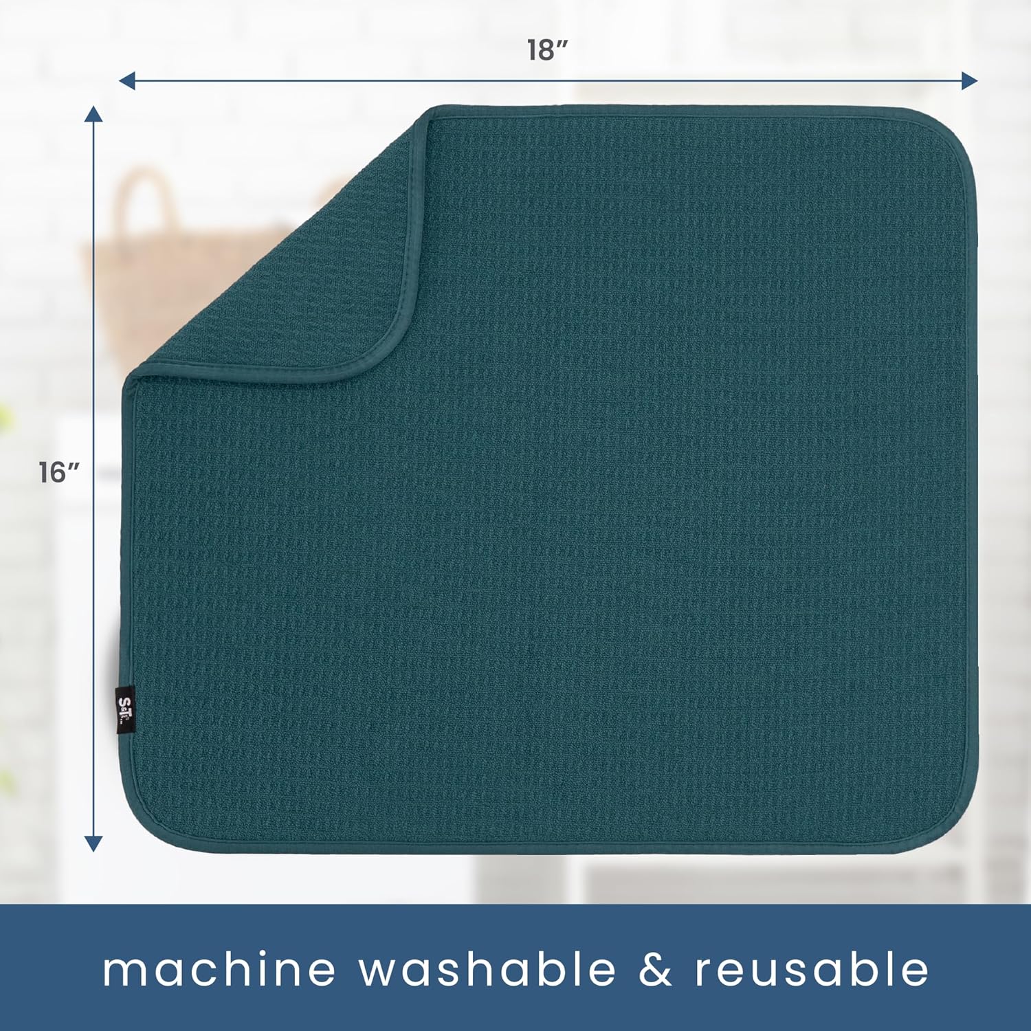 • Dish drying mats for kitchen counter are reusable, machine washable, and easy to store for kitchen organization; durable construction will not chip or break like a stone dish drying mat for kitchen