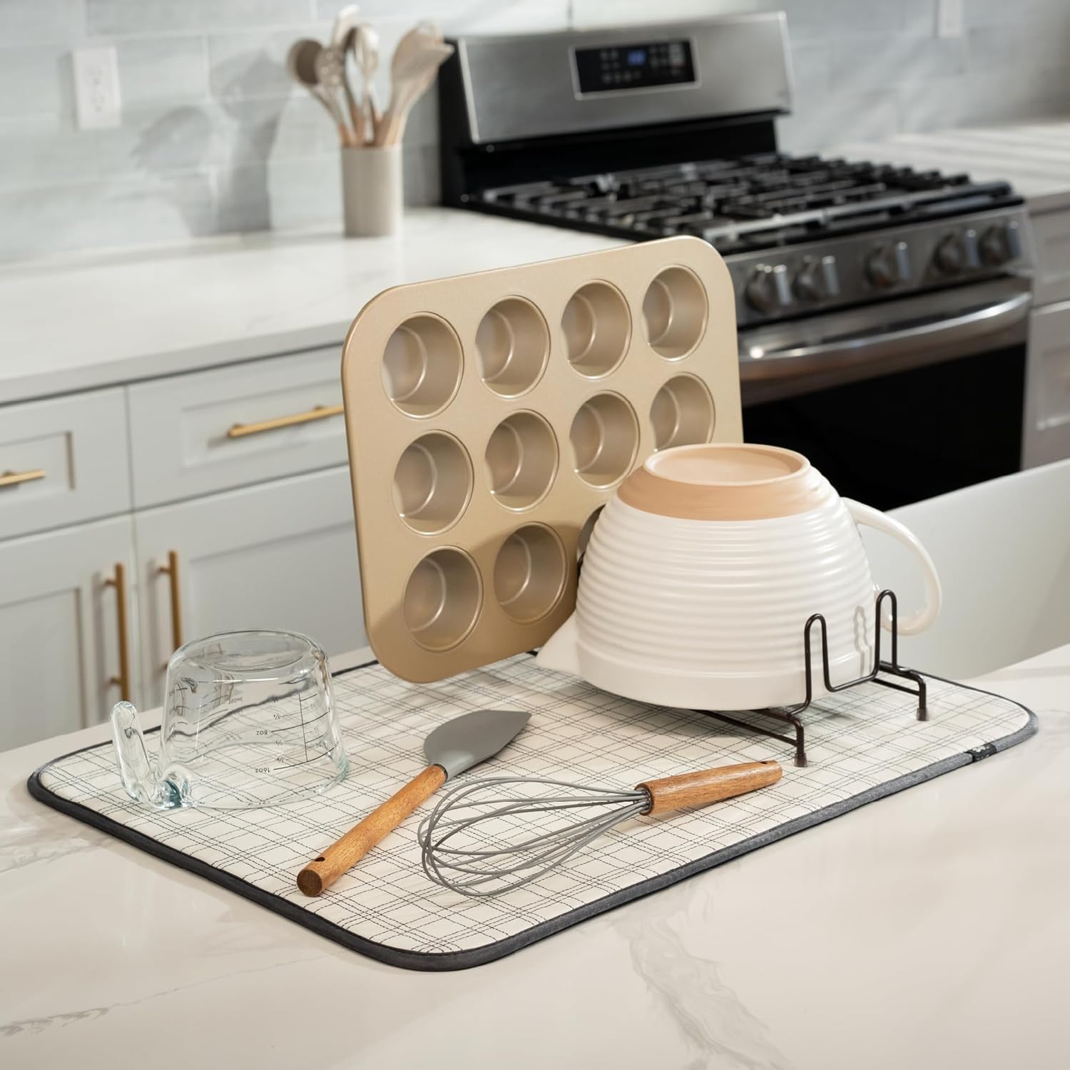 • Dish drying mat for kitchen counter protects surfaces from scratches and scuffs when placed under kitchen gadgets; multipurpose drying pads can be used as an appliance slider for a mixer or blender