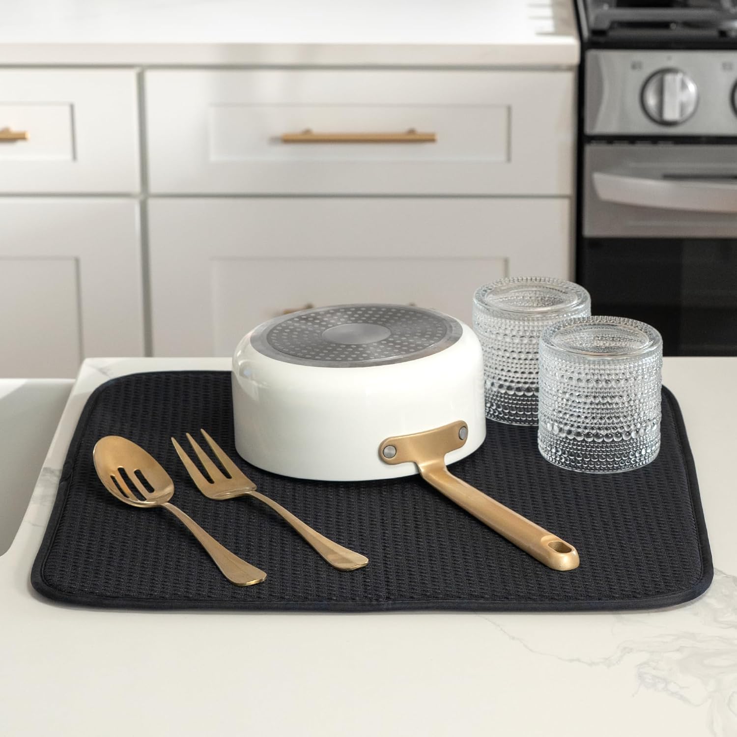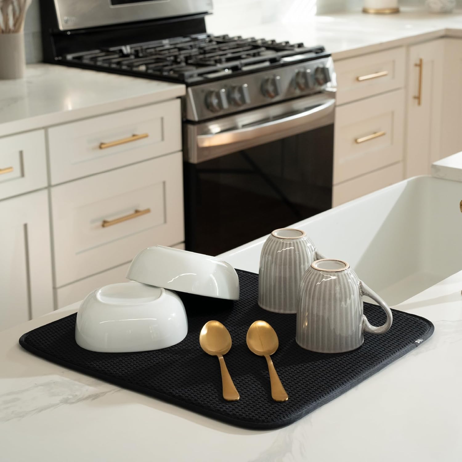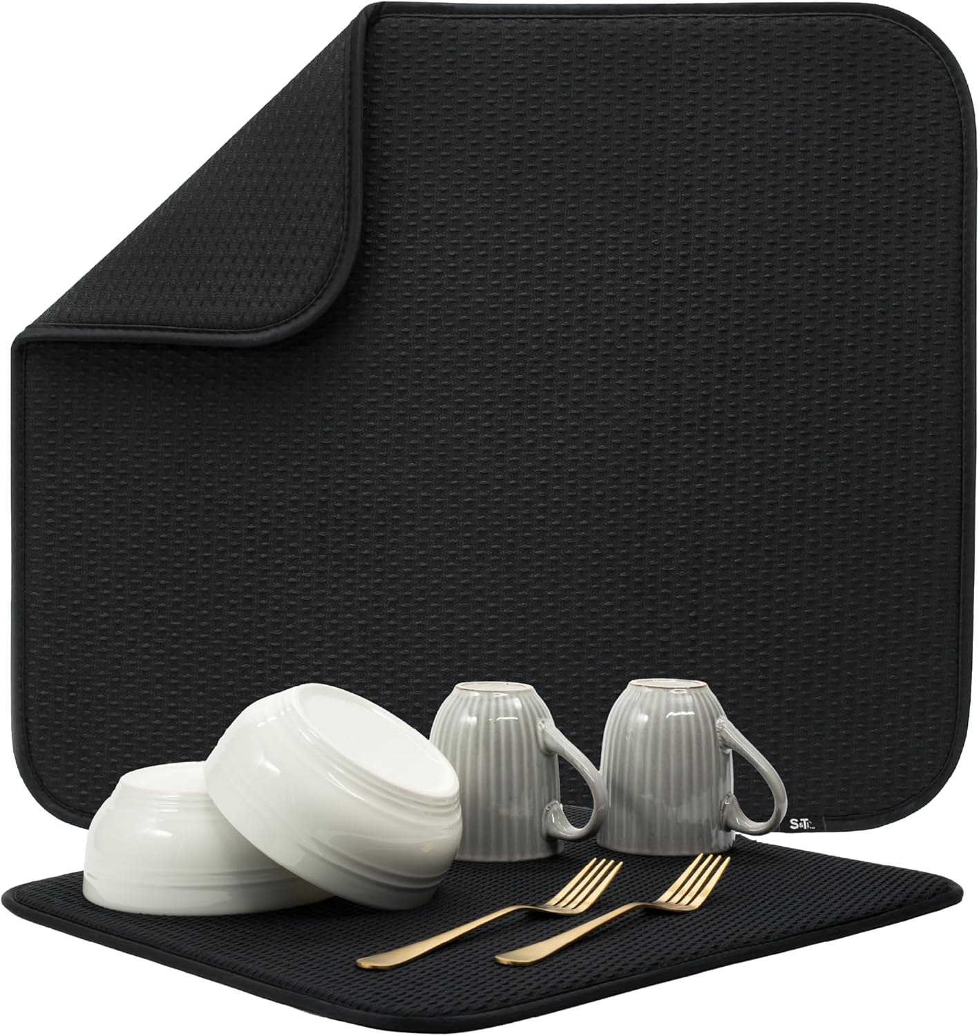 • One Envision Home by S&T INC. Microfiber Dish Dry Mat measuring 16 in. x 18 in.; kitchen mat for countertop absorbs up to 4 times its weight in water to keep your countertop dry, unlike a silicone dish drying mat