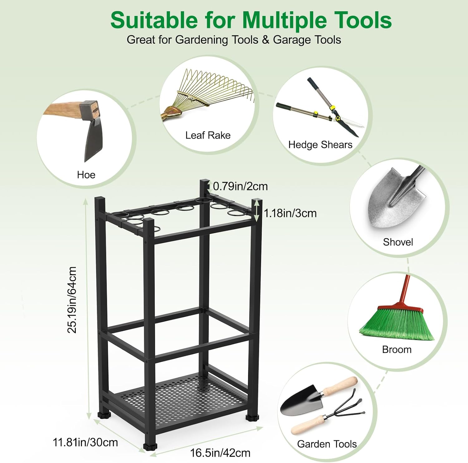 • STRONG CONSTRUCTION: Made of all-metal steel tubing and connected by heavy-duty screws, this garden tool organizer can hold up to 200 pounds, providing a sturdy and durable tool organization for gardening tools that need to be stored. Thanks to the coated surface, the garage tool organizer can be used in a variety of environments and won't rust even in wet conditions.