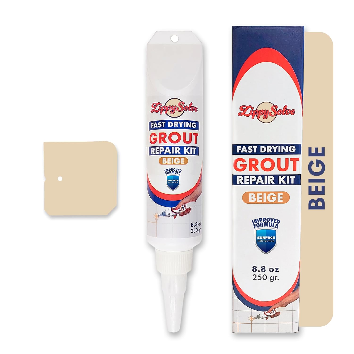• All-in-One Kit: ZippySolve's grout repair kit simplifies home improvement projects. It includes a tube of grout repair solution and a dual-purpose spatula for correction and cleaning.The spatula has four uniquely designed corners for versatile grout application, enabling precise and efficient spreading in various spaces.This streamlined kit ensures a professional finish with minimal equipment.