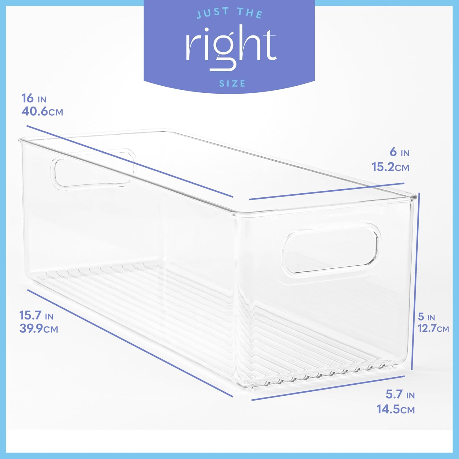 Plastic Food Storage Clear Container Bin with Handles for Organizing Kitchen, Pantry, Fridge, Freezer, Pantry,Bathroom. 16"x6"x5"