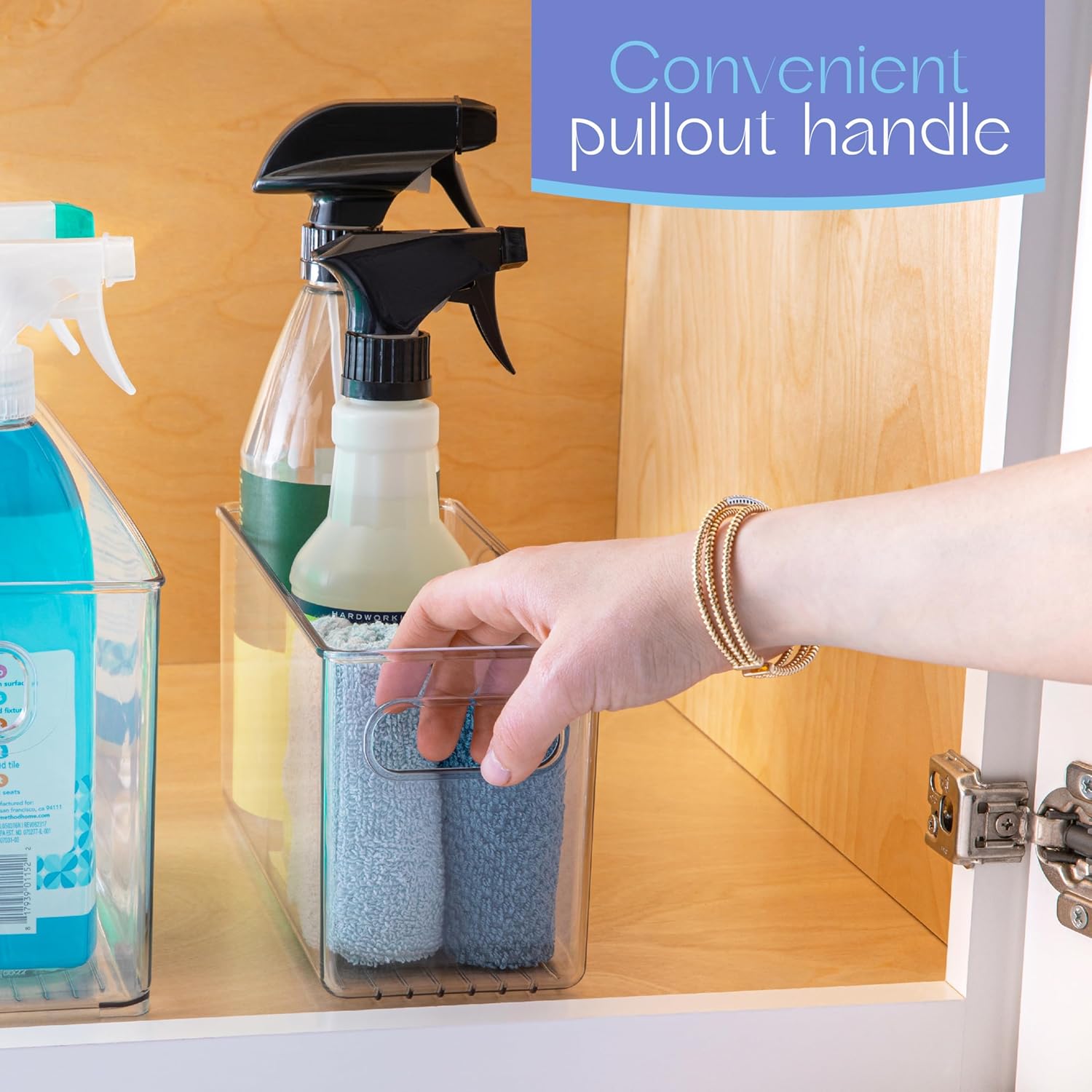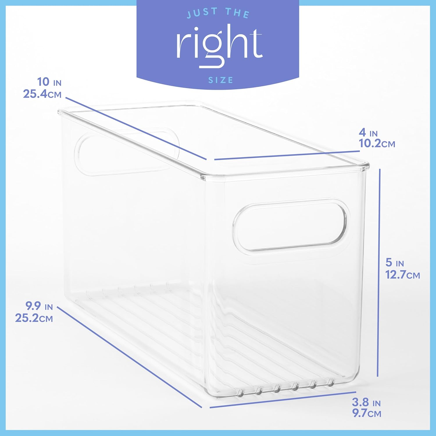 Plastic Food Storage 2 Pack Clear Container Bin with Handles for Organizing Kitchen, Pantry, Refrigerator, Freezer, Pantry, Cabinet, Closet, Bathroom. 10”x4”x5”