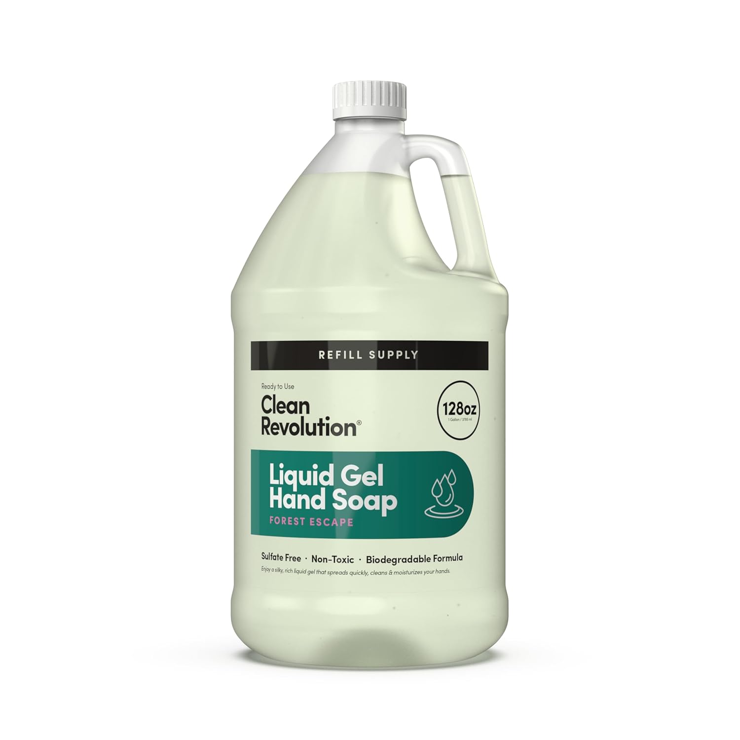 Clean Revolution Liquid Gel Hand Soap, Silky Rich Liquid, Quick Lather, Fast Rinsing, Contains Real Essential Oils (Forest Escape) 128 Fl Oz