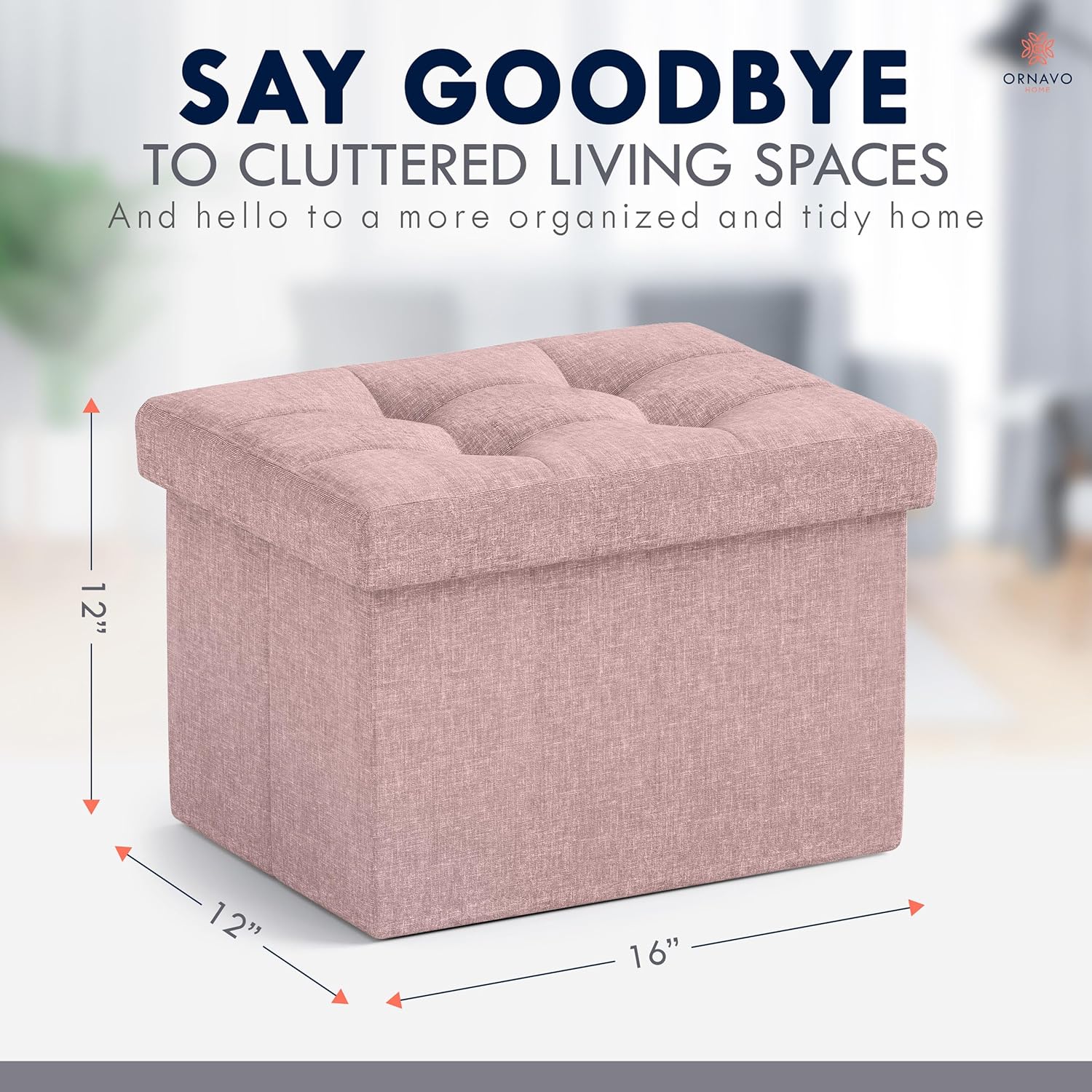 Ornavo Home Small Storage Ottoman Foldable Collapsible Rectangle Linen Ottoman Foot Rest Stool Seat, for Living Room, Bedroom, Home Office, Dorm - 12 x 16 x 12, Pink