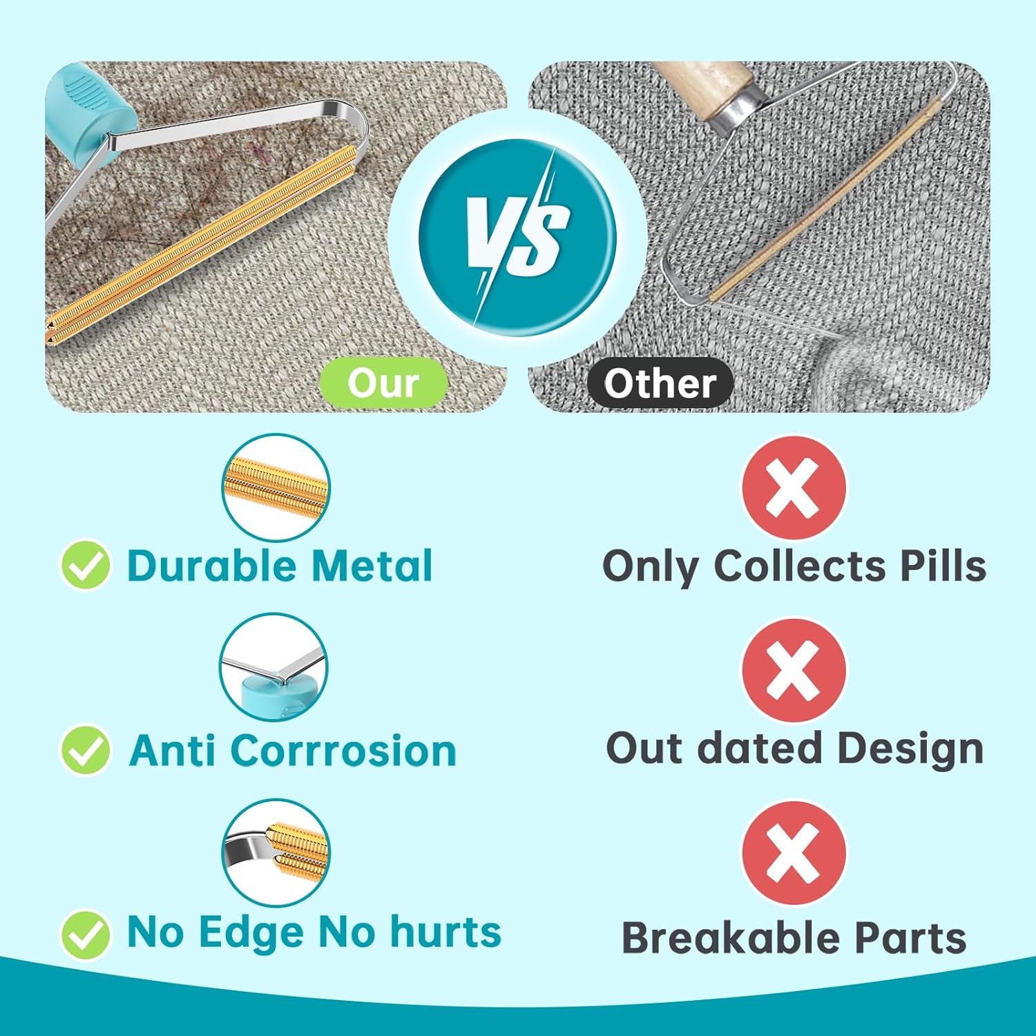 • WIDELY USE:3 Types Reusable Pet Hair Remover for Different Materials --- Copper pet hair remover be used for heavy duty and thick piled items, such as carpet, rug, couch, furniture, blanket, cat tree, car interiors, winter coats and etc. Plastic fabric shaver can be used for soft and thin fabrics, like upholstery, ottoman, velvet, bed sheet, sweatshirt and etc
