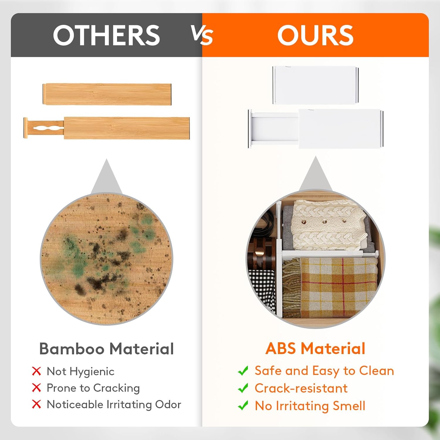 • Advanced Design: Our dresser organizer is made from stable ABS material and has high-quality EVA foam sponges at the ends to prevent scratches and damage to drawer walls, leaving no trace or residue. Additionally, our divider is patented (Patent No: US12133593B2) for a unique experience.