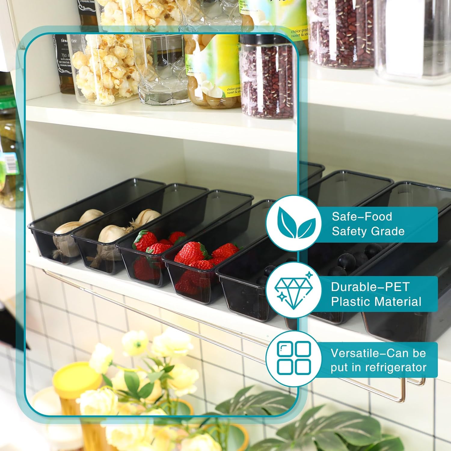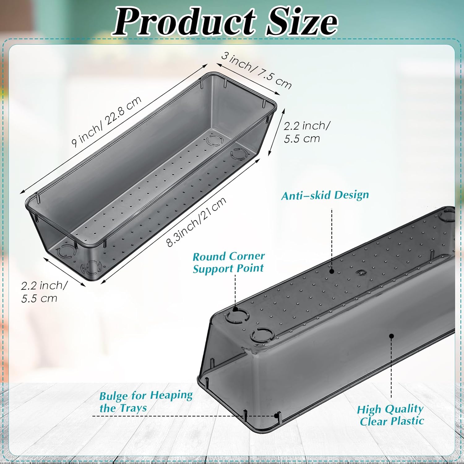 • Sturdy and Serviceable: our kitchen drawer organizer is made of quality PET plastic, which is sturdy and serviceable, not easy to break or deform; The raised dot design at the bottom can help to fix it in the shelves or drawers to avoid slipping