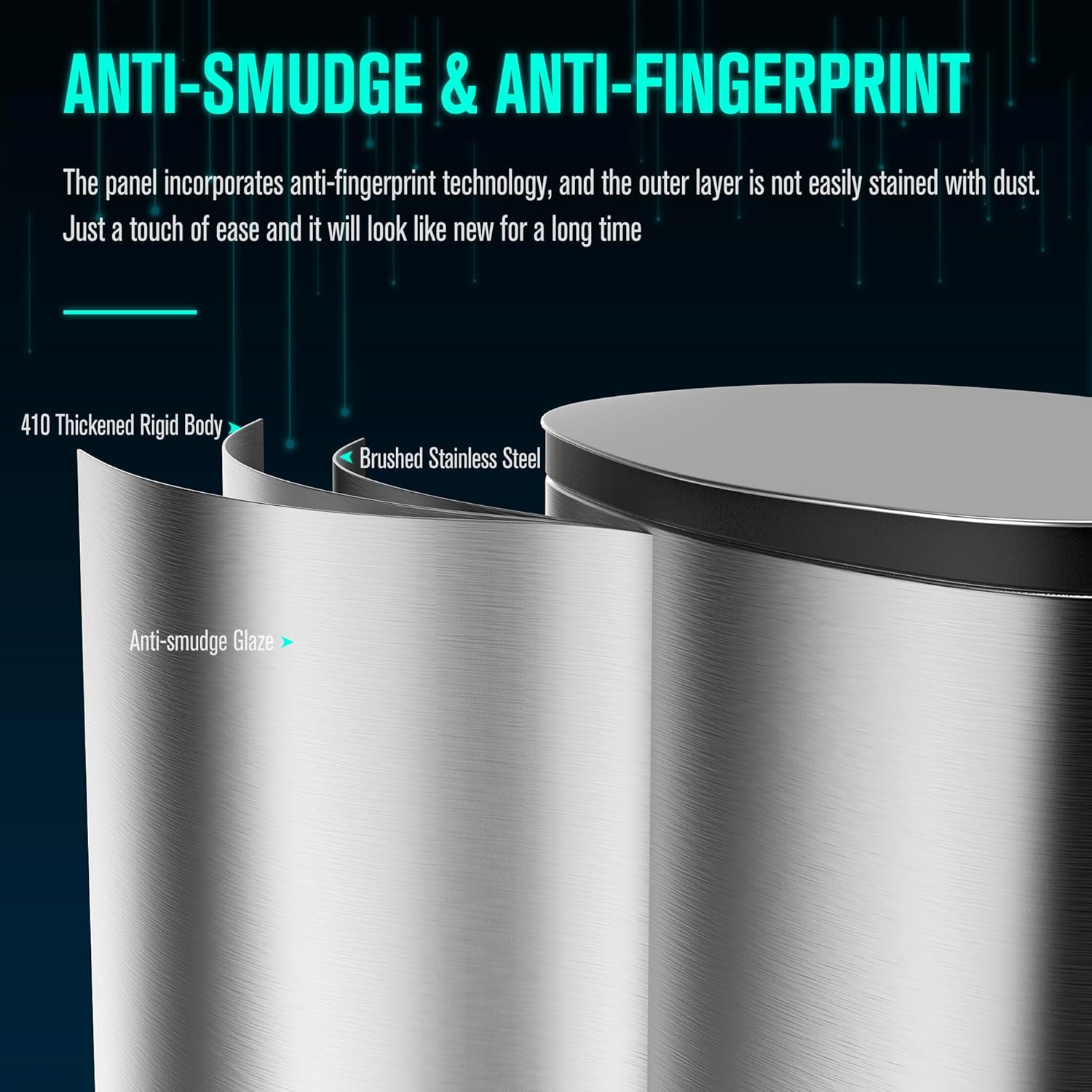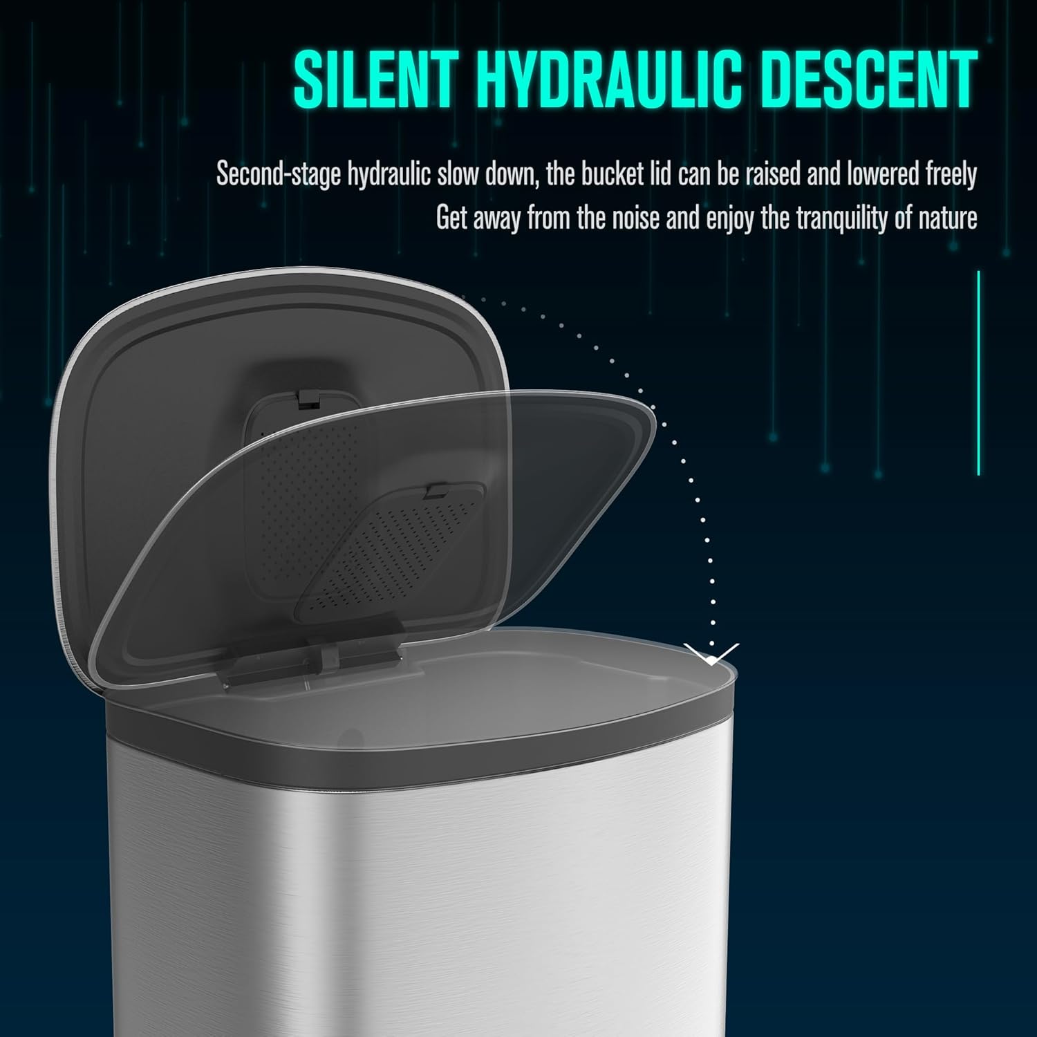 • Durable and Easy to Maintain: Our trash can features a smudge-resistant, durable stainless steel exterior, ensuring it stays looking pristine for longer. The heavy-duty plastic interior bucket is easily removable for hassle-free waste disposal, while the stay-open lid lock facilitates effortless bag changes and cleaning.