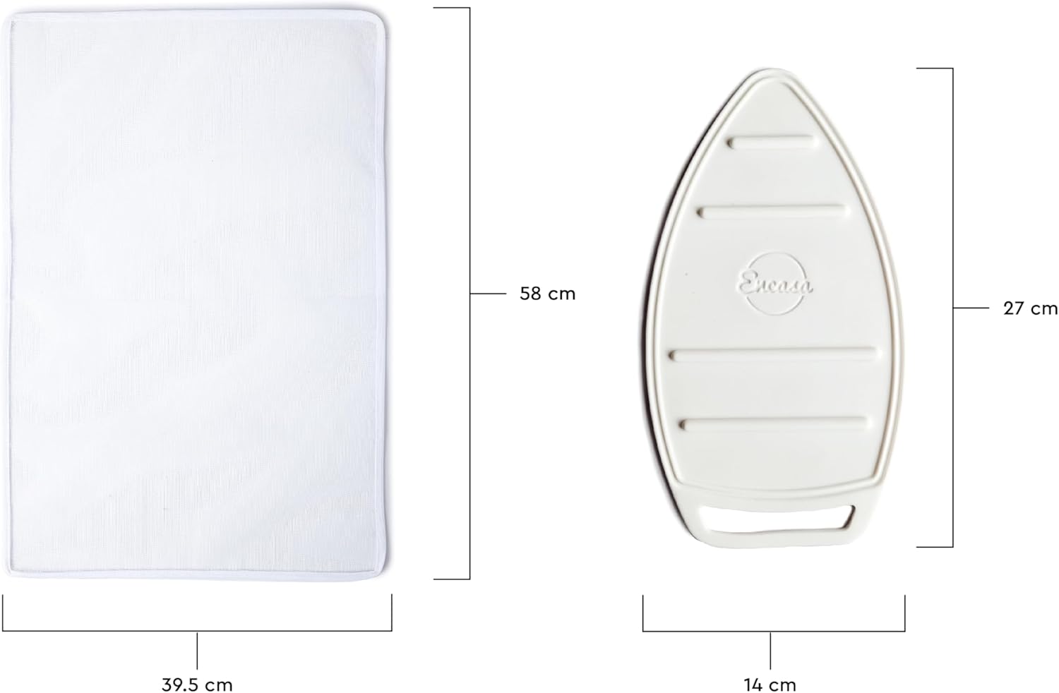 • ACCESSORIES INCLUDED: Each package includes one ironing board cover with pad, a white silicone iron rest for safely placing your hot iron, and a mesh cloth to protect delicate garments while ironing.